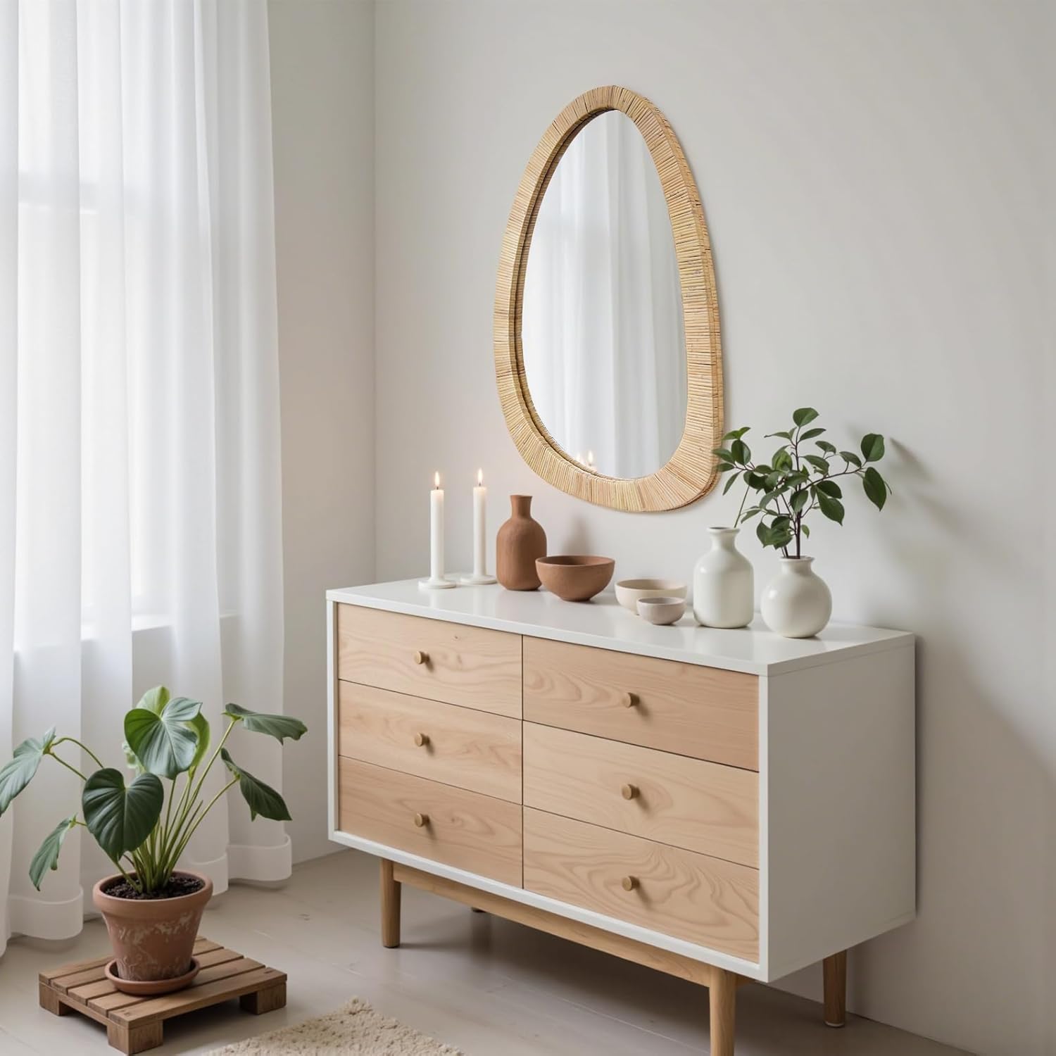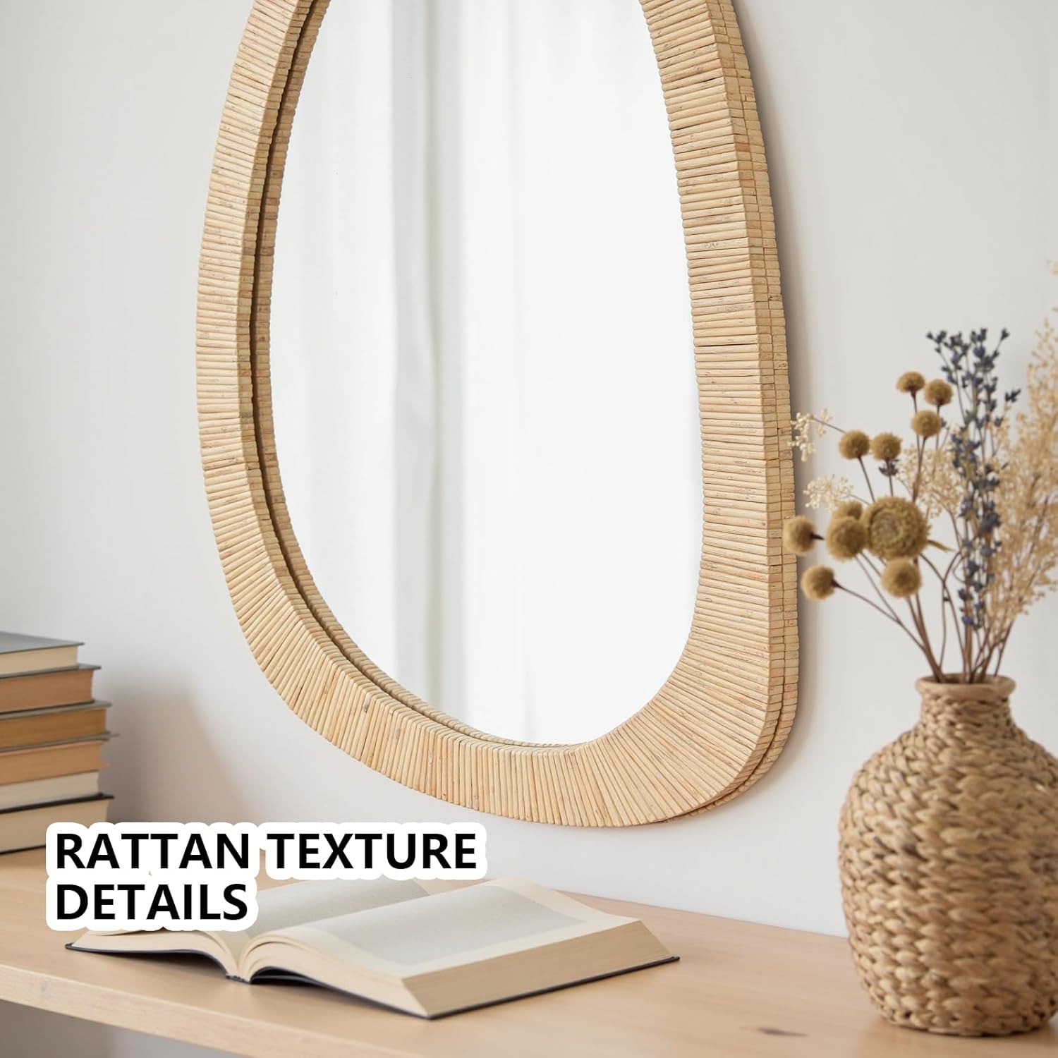 - Elevate Any Space : This versatile rattan boho mirror is ideal for adding style to any room.Perfect as a trendy nursery mirror or as a chic rattan mirror for a bathroom vanity. Irregular lines creates modern and neat feeling,complements any home decor.