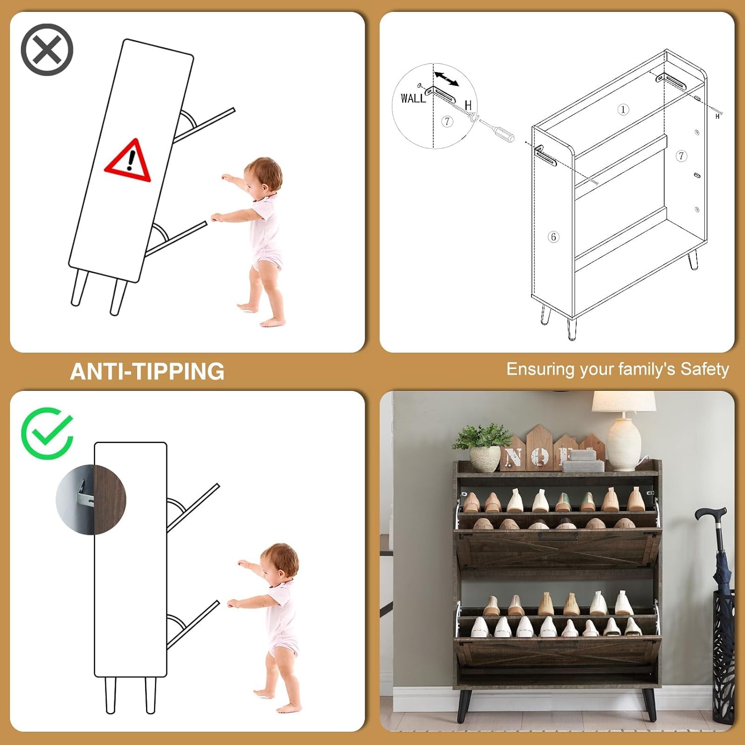 - 【Stable Structure】 Made of high-grade MDF, which lasts for long-term use and can bear the weight of a large number of shoes.The anti-tipping kits can prevent injuries from furniture tip-over, this item should be securely fixed to the wall