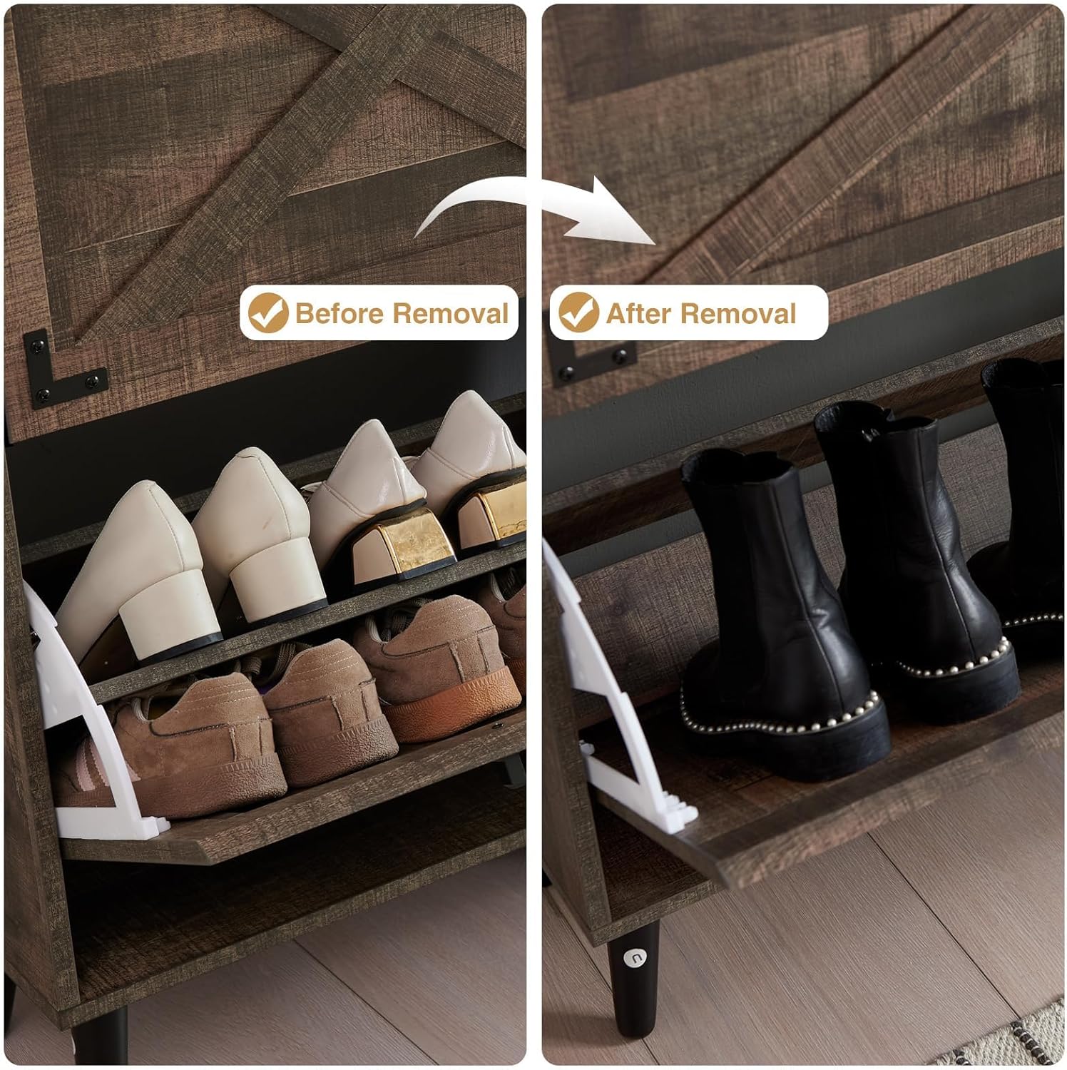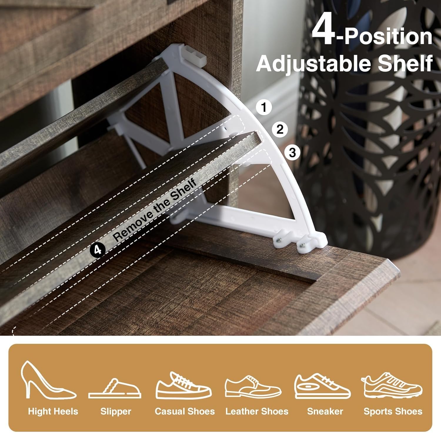 Shoe Storage Cabinet,Farmhouse Shoe Organizer with 2 Flip Drawers & Barn Door Design,Freestanding Hidden Slim Narrow Shoe Rack Cabinet for Entryway,Foyer,Hallway,Rustic Brown