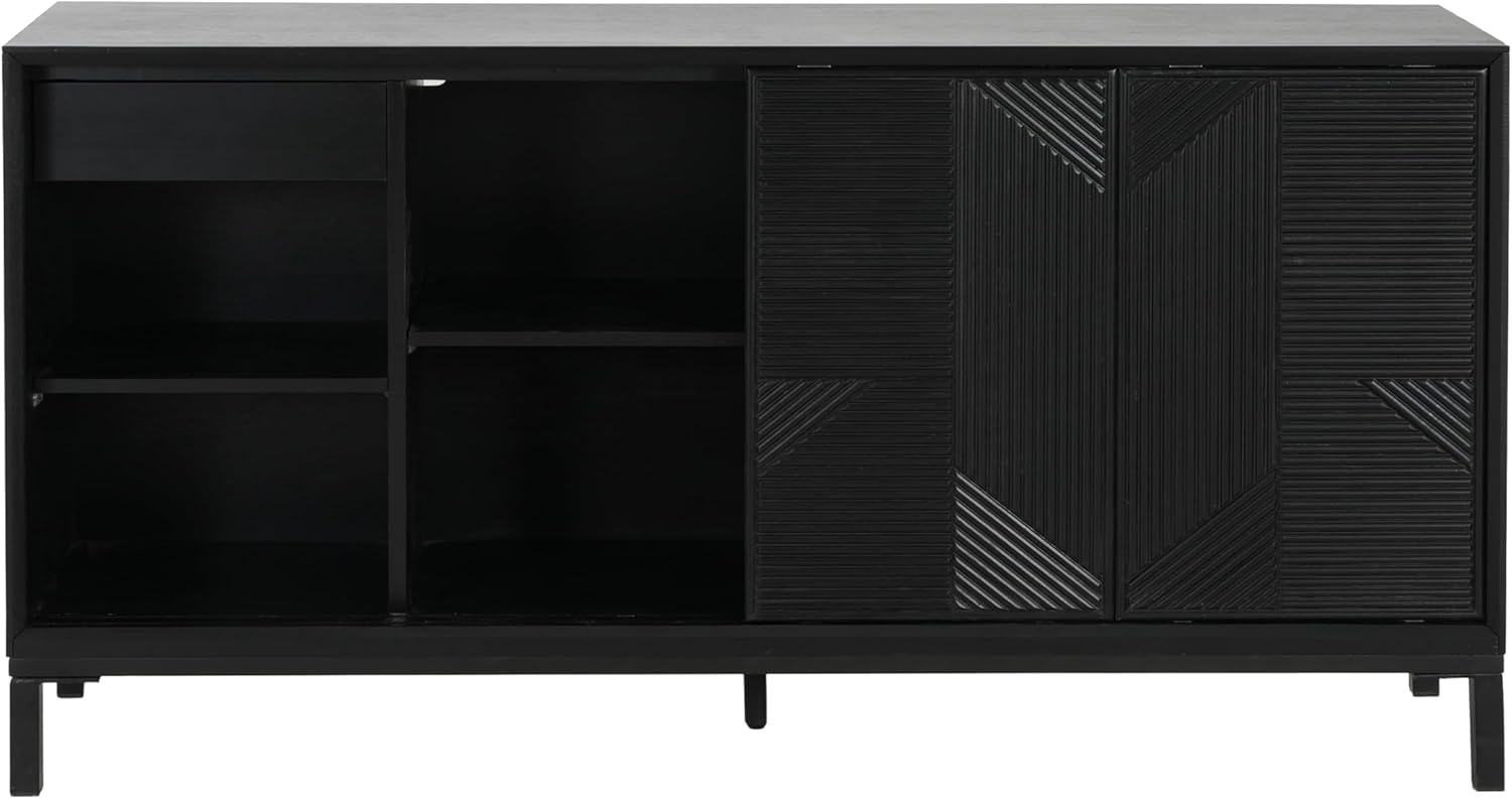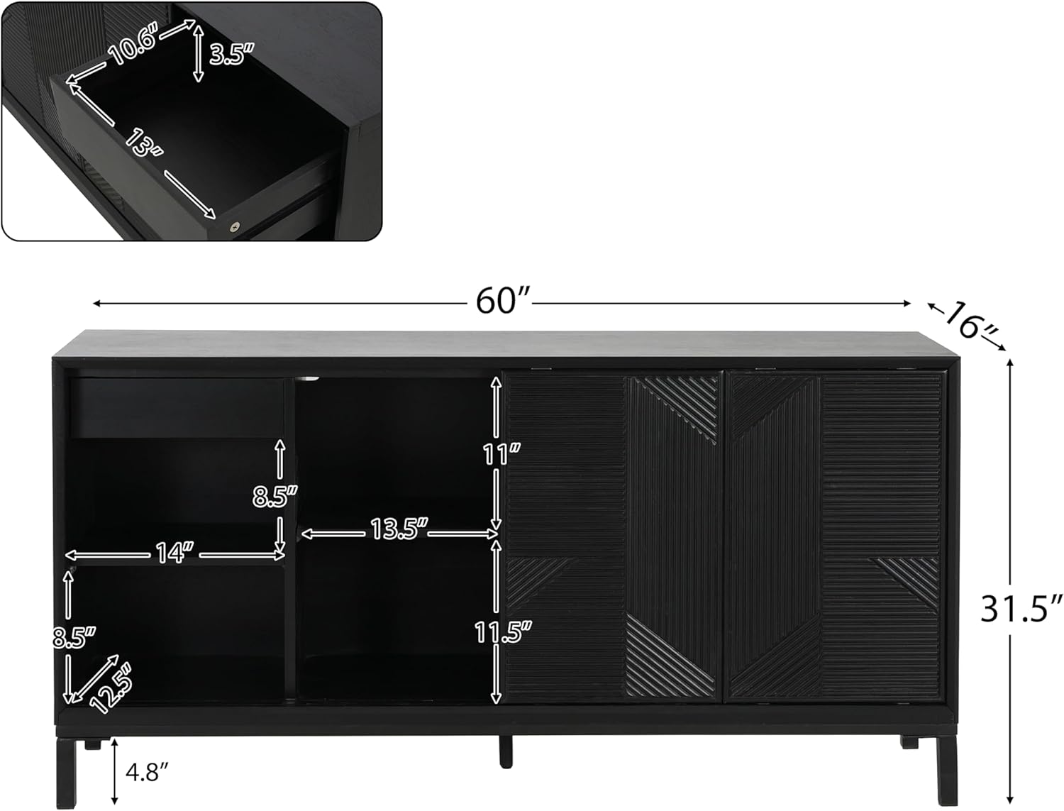Merax Modern Geometric Accent Cabinet, Vertical Striped Design Sideboard Buffet with Two Drawers, Sliding Doors, Wood Veneer Top, Minimalist Storage Cabinet for Study, Entryway and Living Room, Black