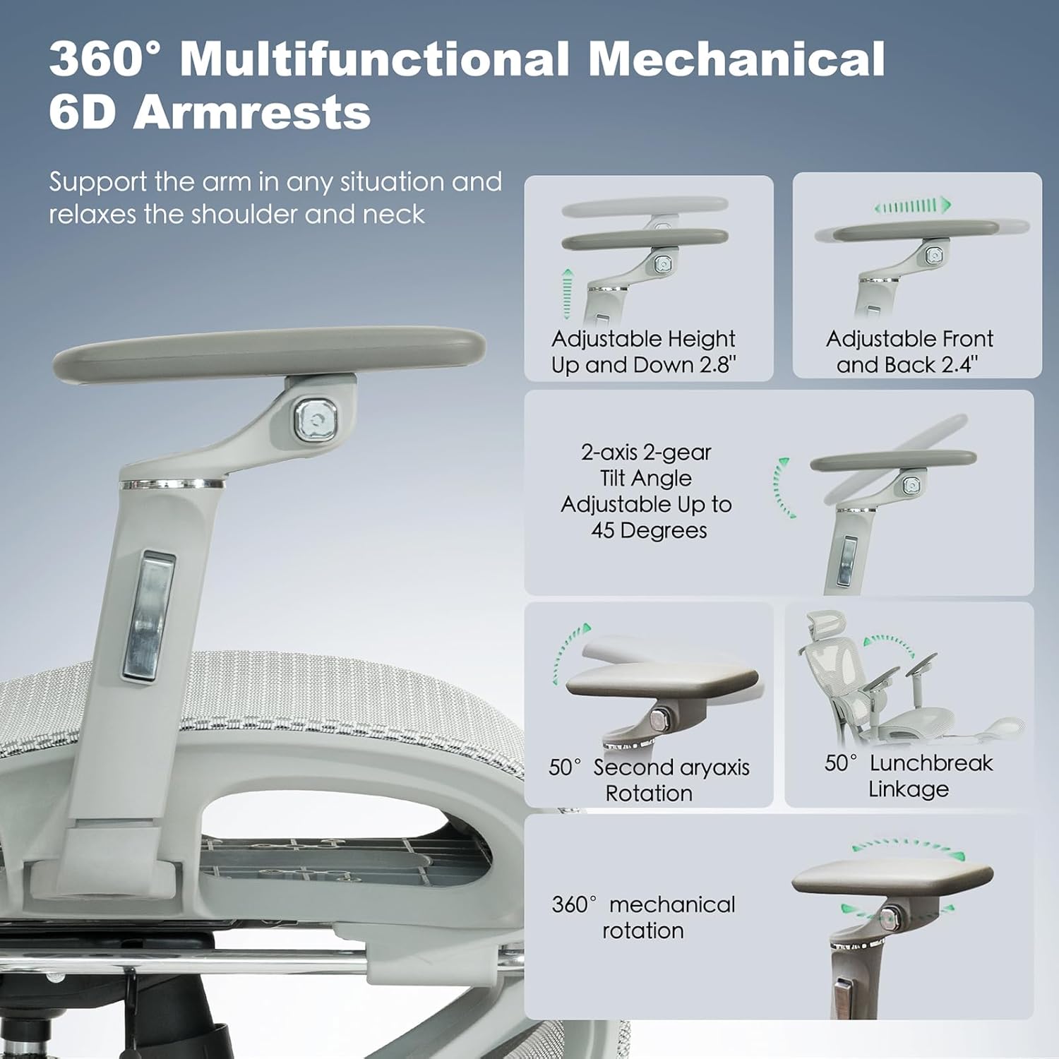 Ergonomic Mesh Office & Gaming Chair | 3D Lumbar Support, 6D Adjustable Armrests, Retractable Footrest | SGS Class 4 Certified | High Back Desk Chair for Home Office, Supports 400lbs