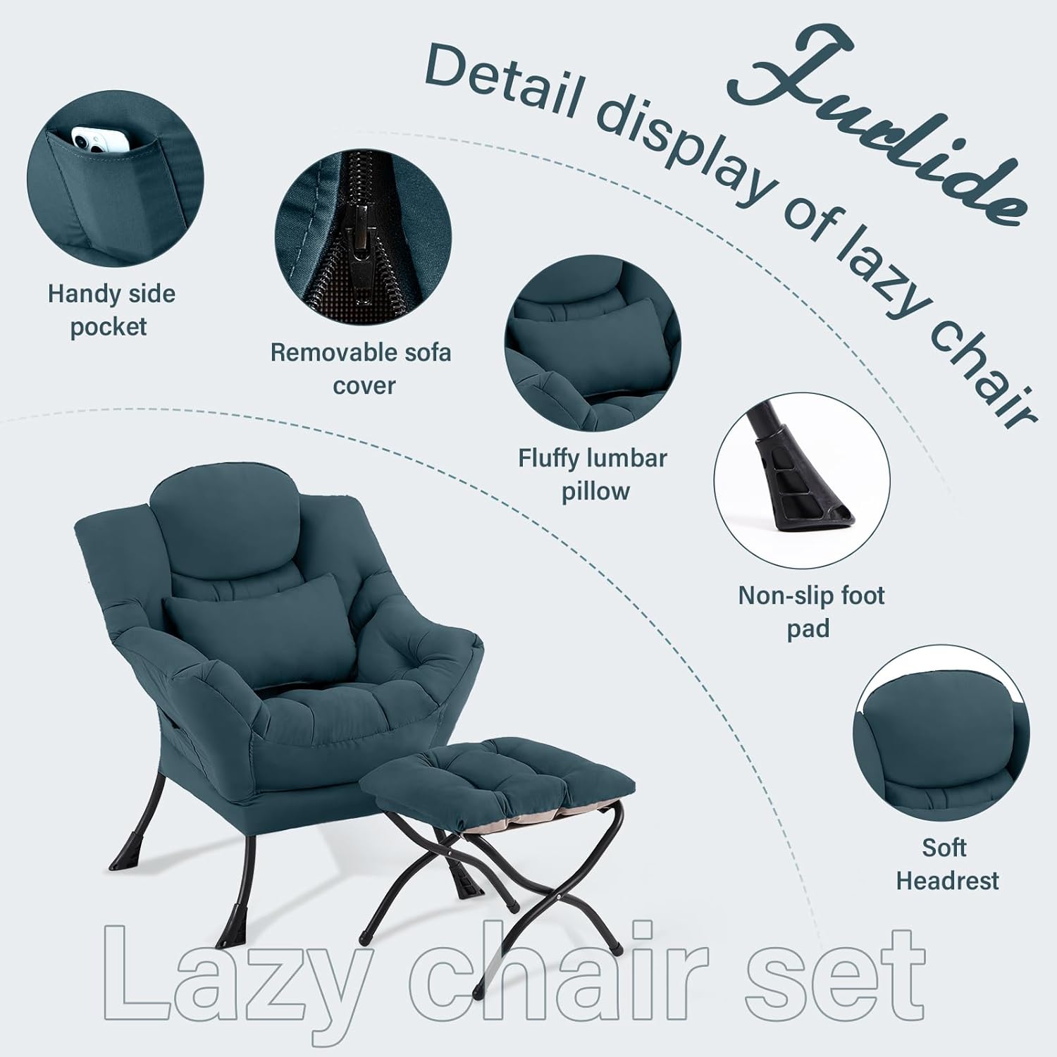 - Giveaway a lumbar pillow: This lazy chair with ottoman includes a lumbar pillow that supports your lower back while you lounge, read, or relax—giving you that extra boost of comfort other chairs just don’t offer.Whether you're updating your living room, dorm, or reading nook, this comfy lounge chair blends style and function