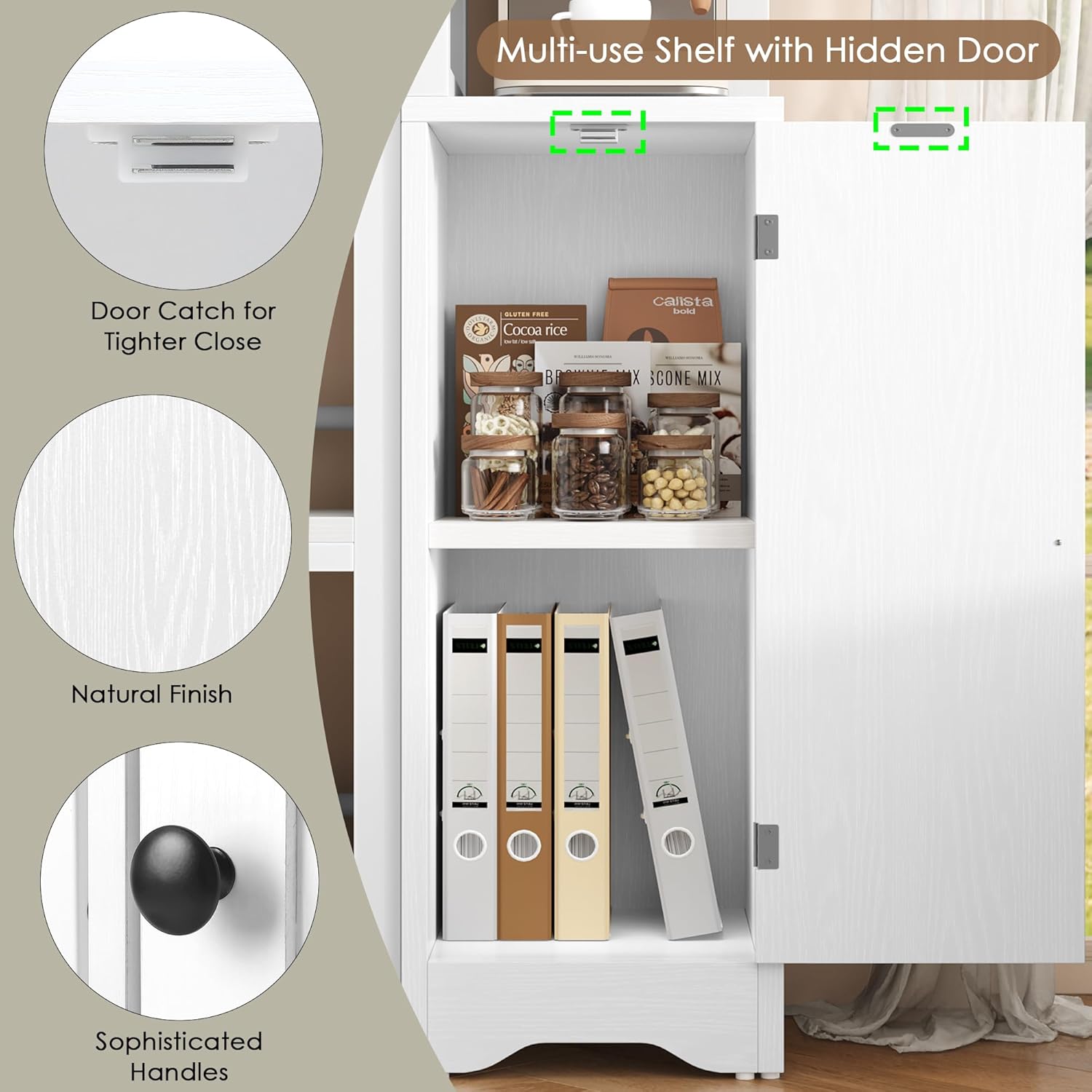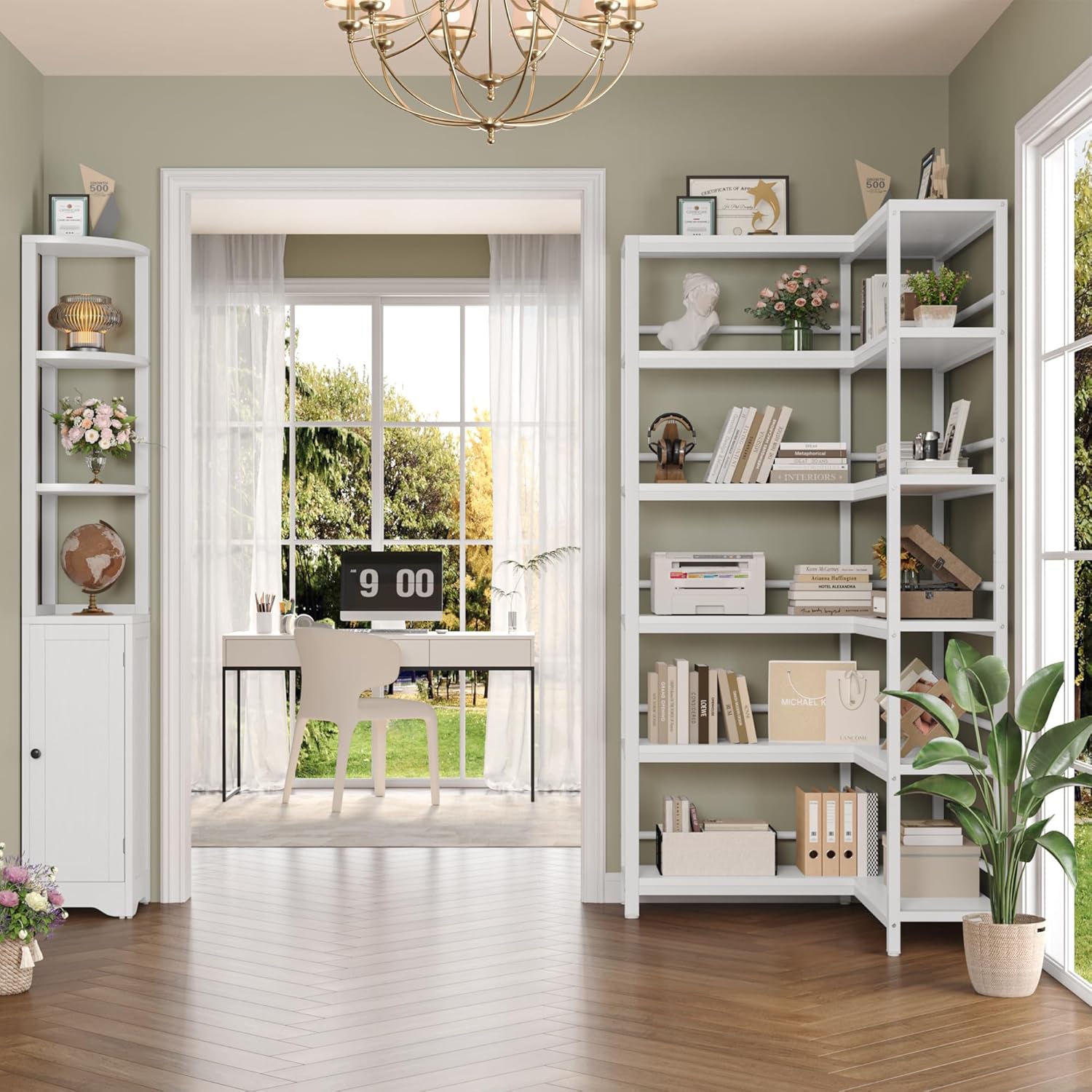 - 2 Reversible Shelves with Door Meet Various Uses: This tall corner bookshelf can be disassembled into 2 separated units, can be flexibly combined to fits into any spaces and rooms. Whether a large or a small room, it can be used flexibly, such as living room/office/entrance/kitchen. In addition, the cabinet with door can hide your private items. 1 multi-use shelf meets your different usage needs, brings convenience to your life and updates your space
