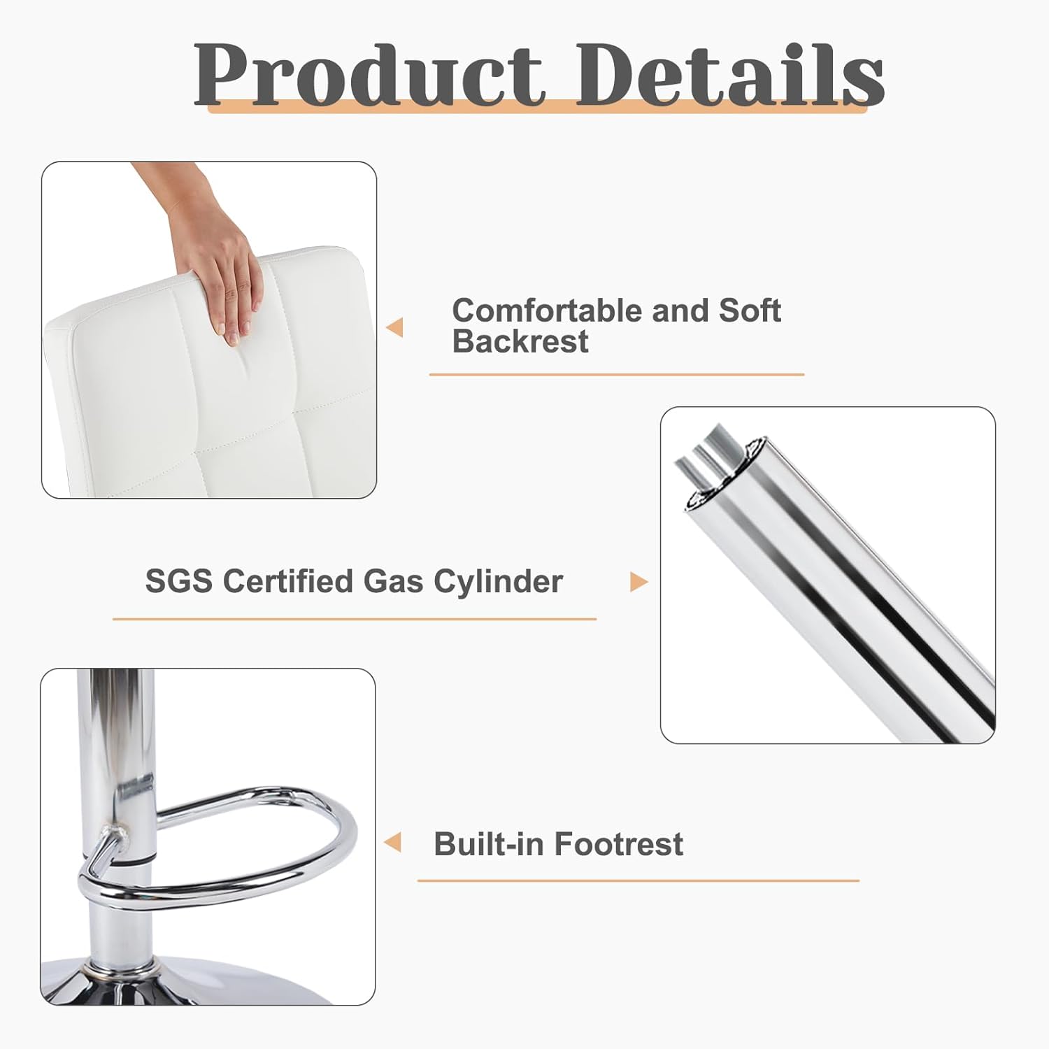 Sweetcrispy Bar Stools Set of 2, Armless PU Leather Adjustable Swivel Barstools, Hydraulic Kitchen Counter Height Thickened Seat Cushion Square Island Countertop Chairs with Back - Modern White