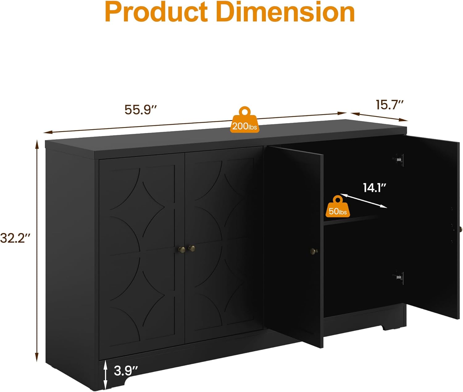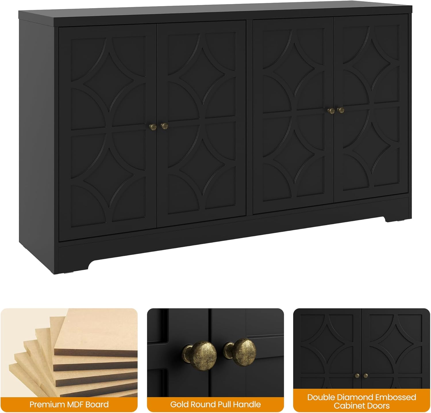 Sideboard Buffet with 4 Doors, Mid-Century Sideboard Cabinet with Adjustable Shelves, Accent Cabinet for Entryway, Living Room, Dining Room, Black