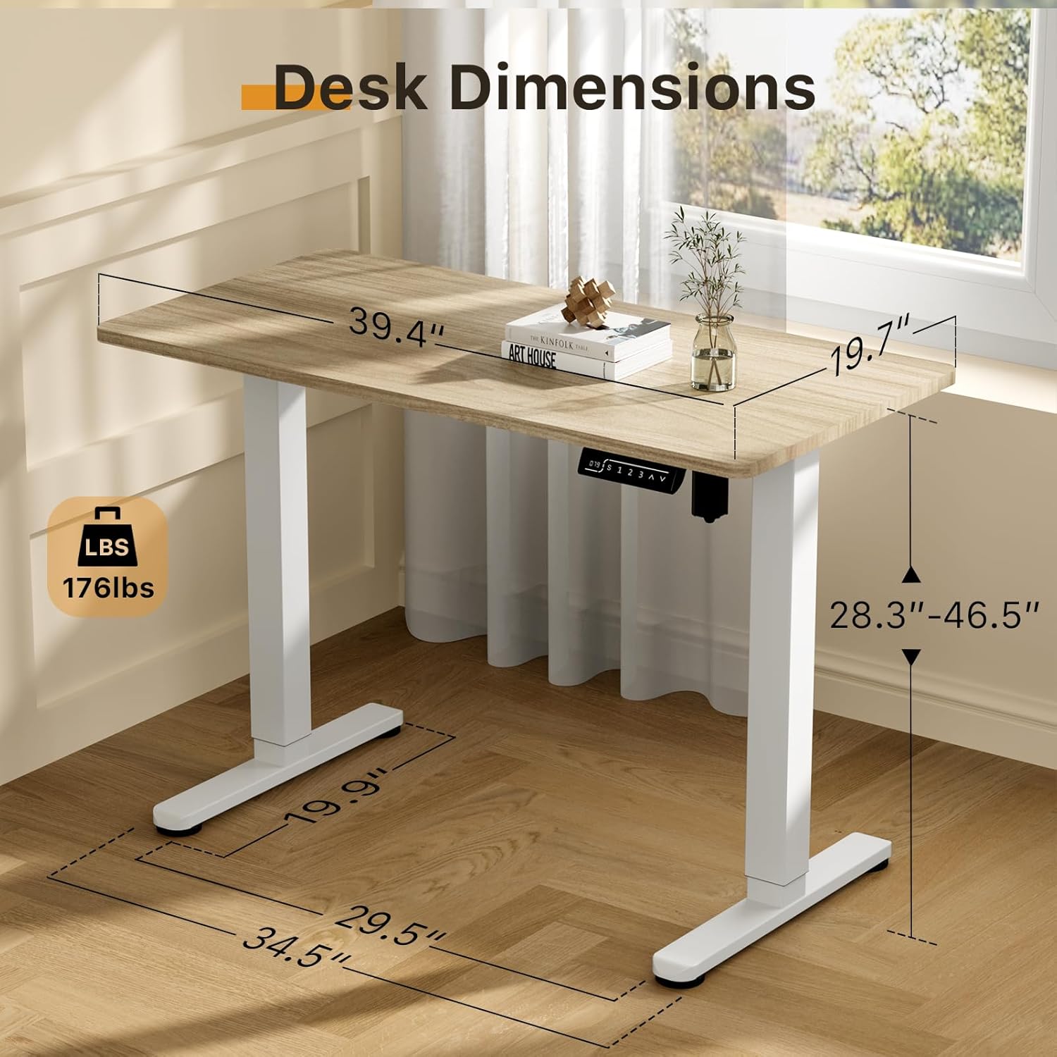JOY worker Small Electric Standing Desk, 40" x 20" Whole Piece Height Adjustable Table with Memory Controller, Sit to Stand Desk Workstation for Home Office, Light Walnut