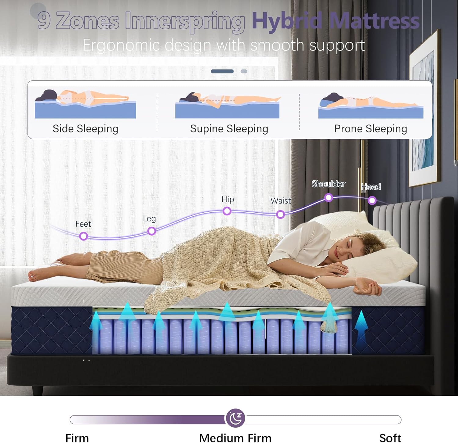 - 【Comfort Hybrid King Mattress】Experience the perfect blend of support and plush comfort with our 10-inch King mattress (80"x76"). Featuring individual pocket springs and slow-rebound foam, it ergonomically cradles pressure points—feet, hips, shoulders, and head—for cloud-like relaxation.