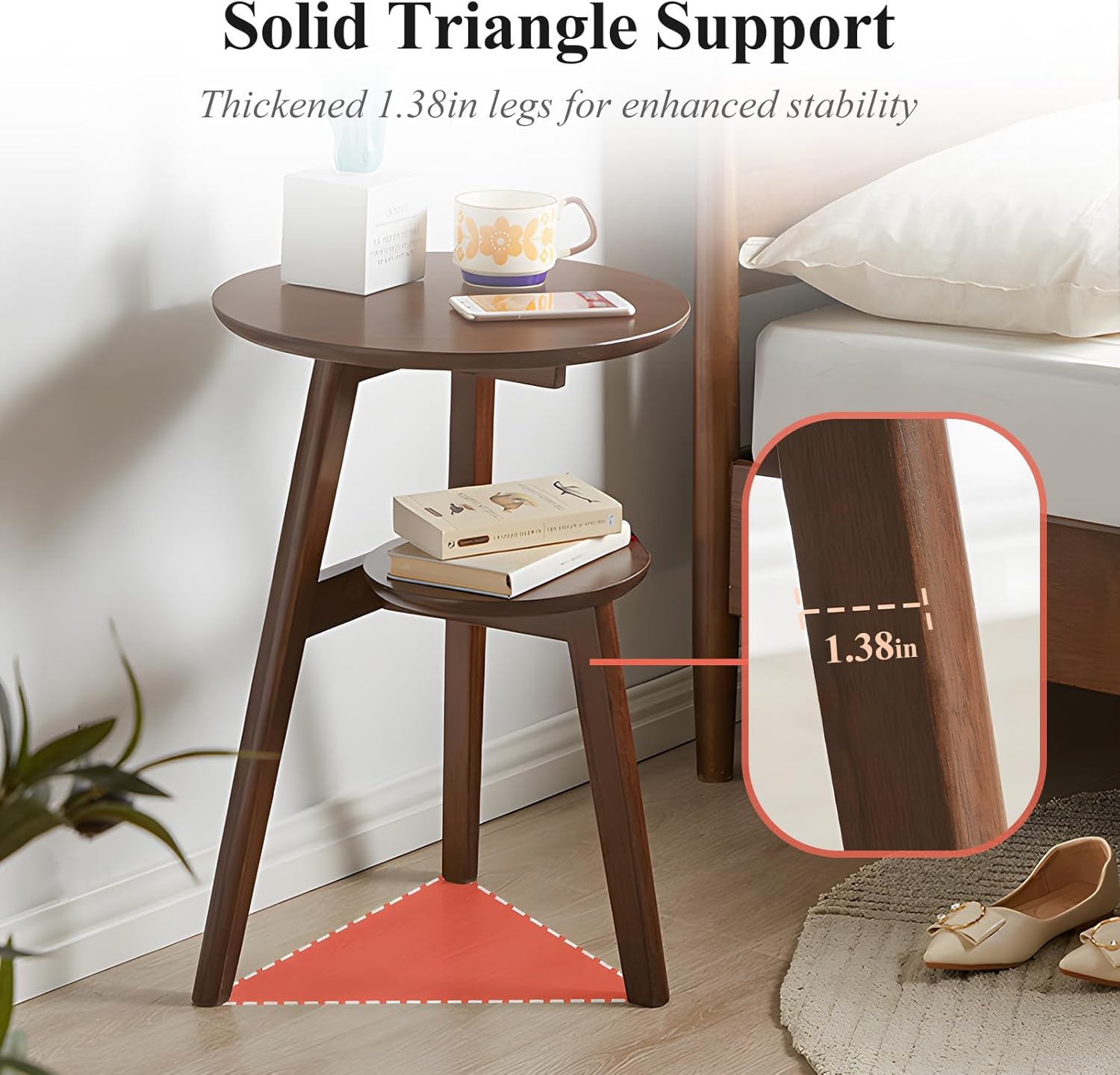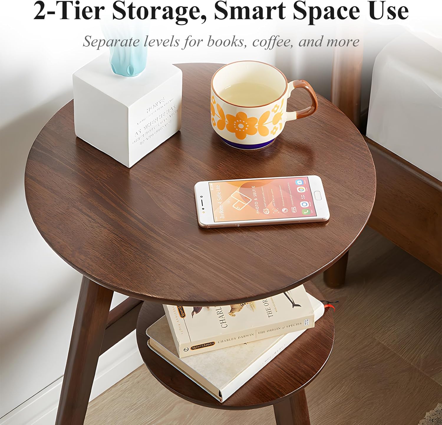 Side Table, 2-Tier Round End Tables Living Room, Mid Century Modern Side Table, Round Nightstand, Oak Accent Table, Small Round Coffee Table, 16.54" Dia.x 23.62" H(Walnut)
