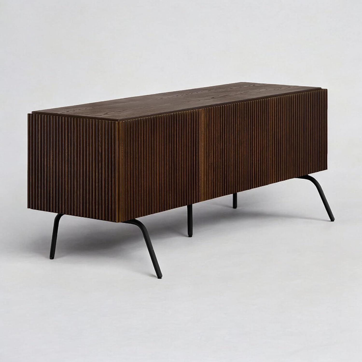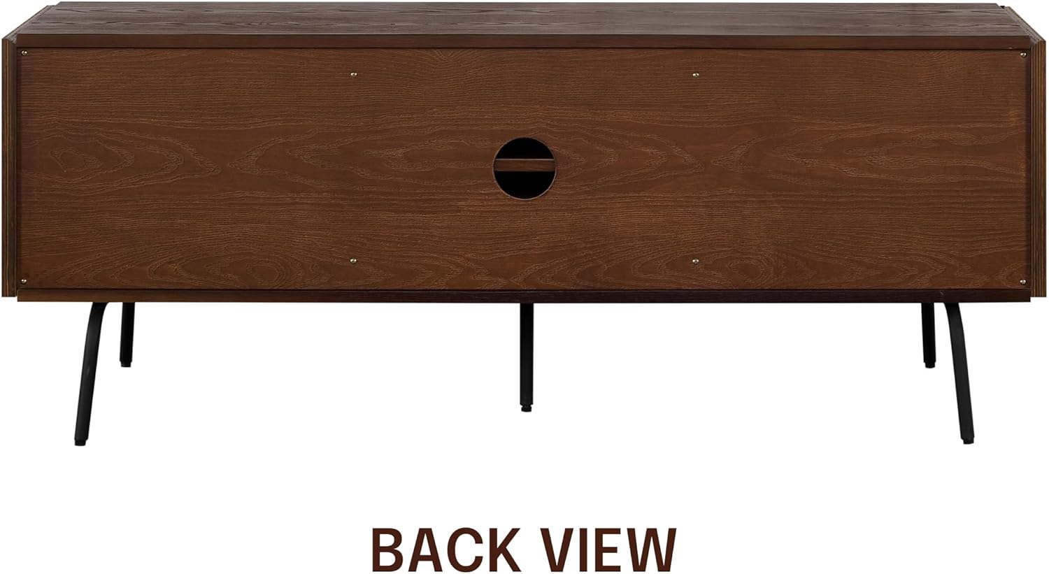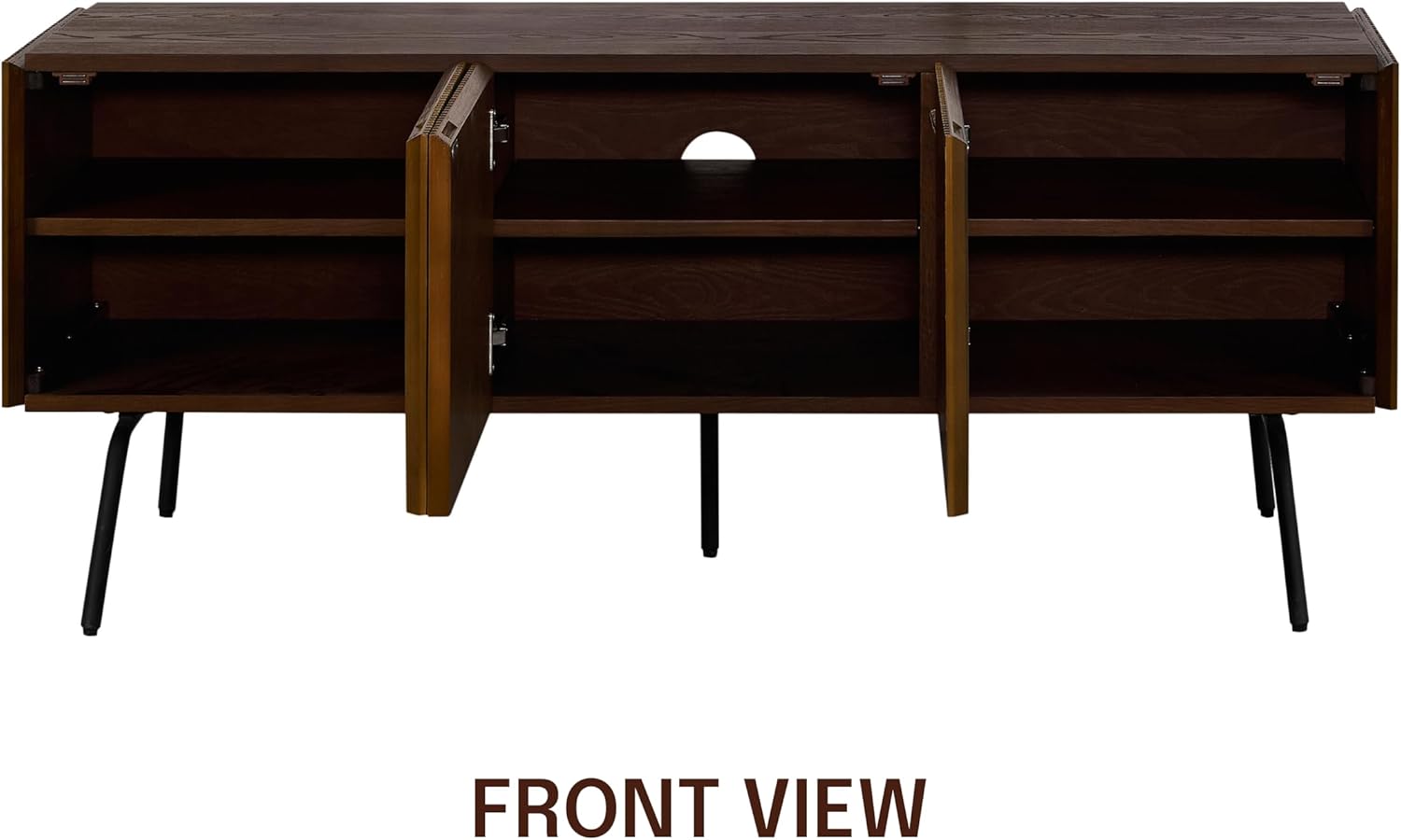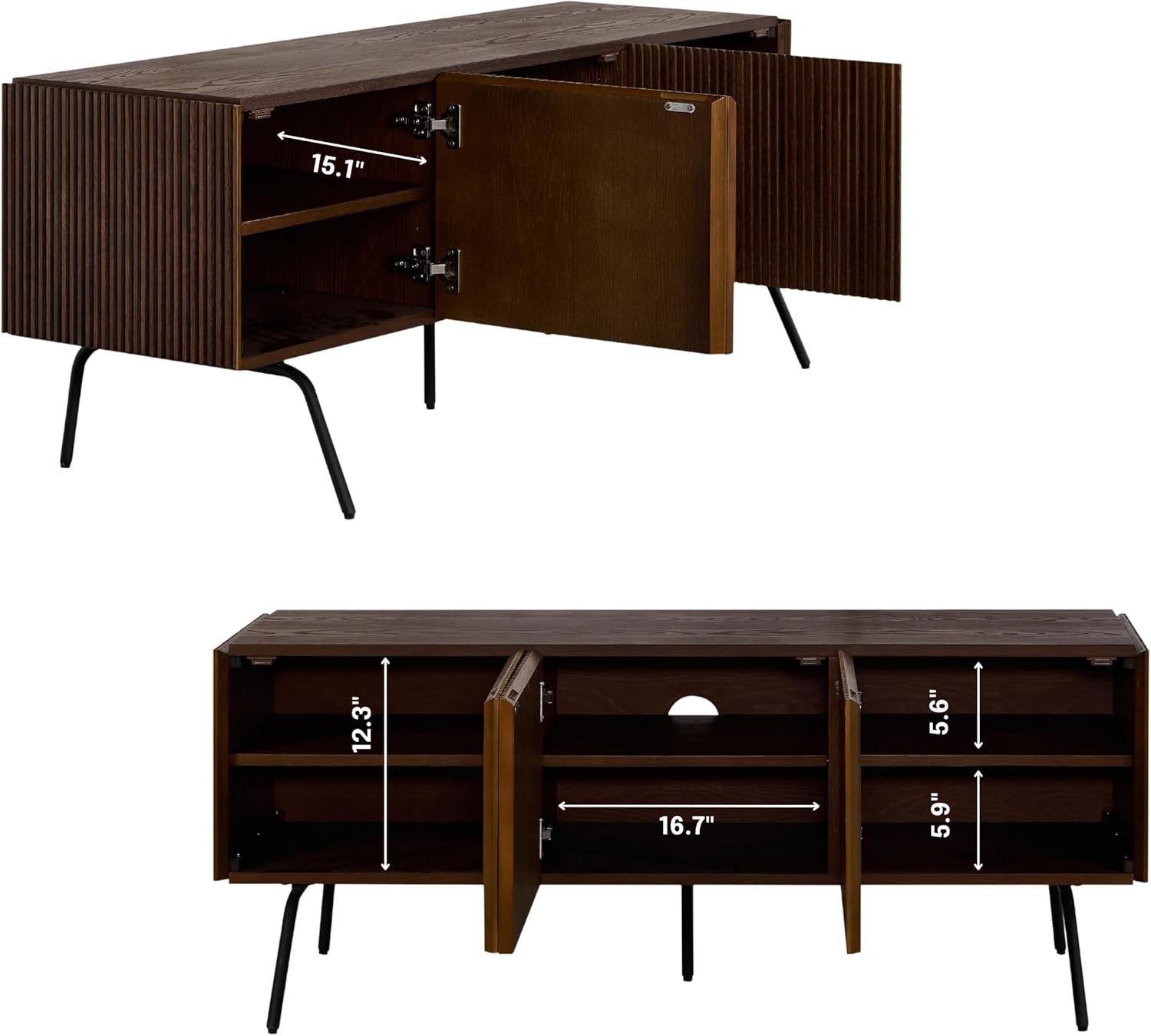 NTC Veil TV Stand with 3 Doors for TVs up to 60’’, Media Console with Vertical Groove Design and Metal Legs, Modern Entertainment Center for Living Room and Bedroom, Effortless Assembly, Dark Walnut