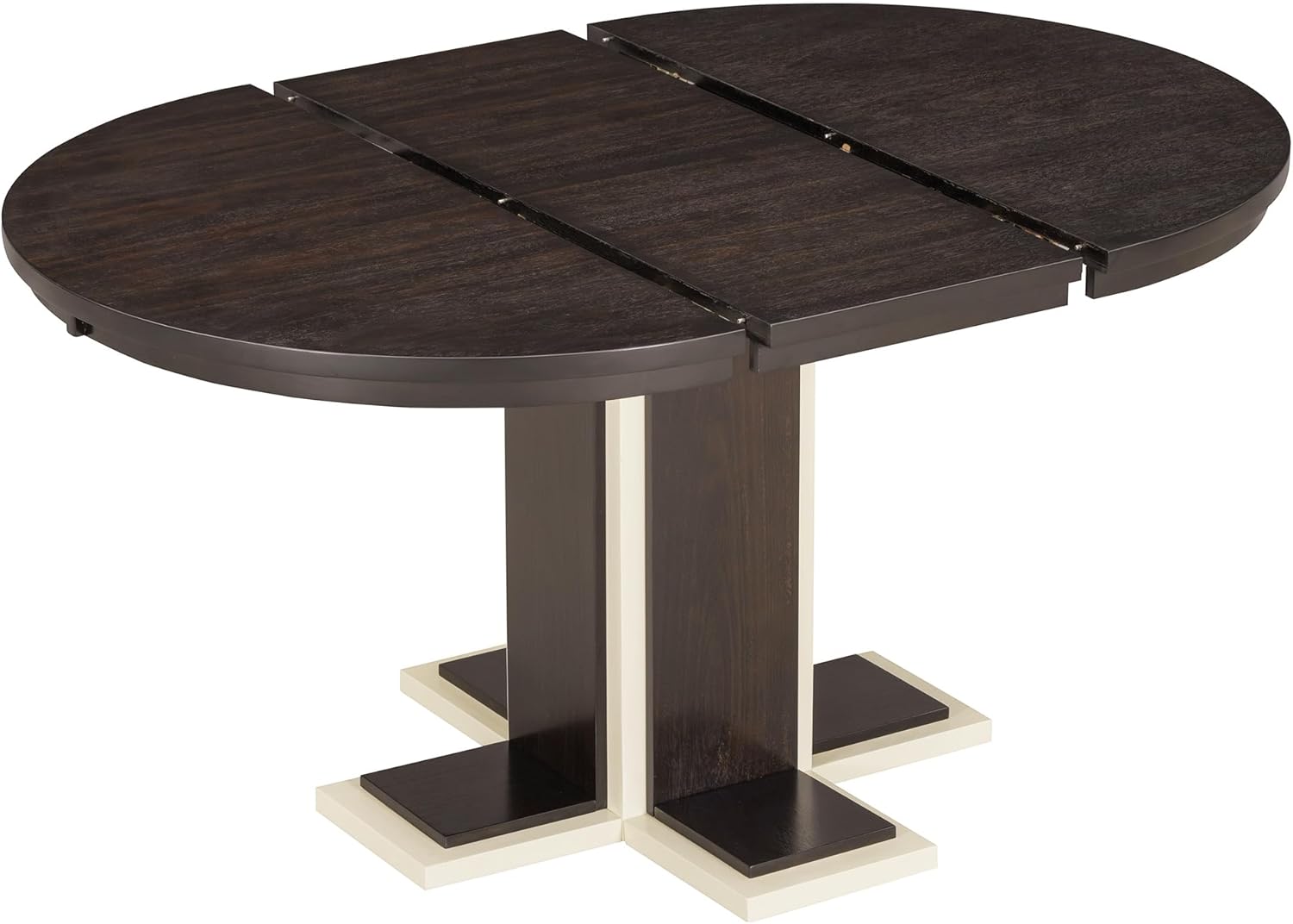 Ball & Cast Farmhouse Extendable Dining Table for 4-6, 42"-58" Extendable Kitchen-Table with a 16" Leaf, Round Ellipse Retro Wood Dining Room-Table w/Double Layer Base,Two Tone Color, Espresso