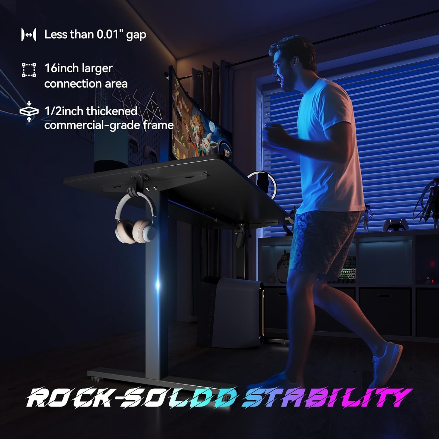 - 【220lbs Powerful Motor】This gaming desk features a Powerful motor for fast and quiet performance with a speed of 1’’/second and a maximum noise level of 45 dB. The computer desk is tested to withstand 100,000 lift cycles to ensure excellent stability and 8-10 years long service life.