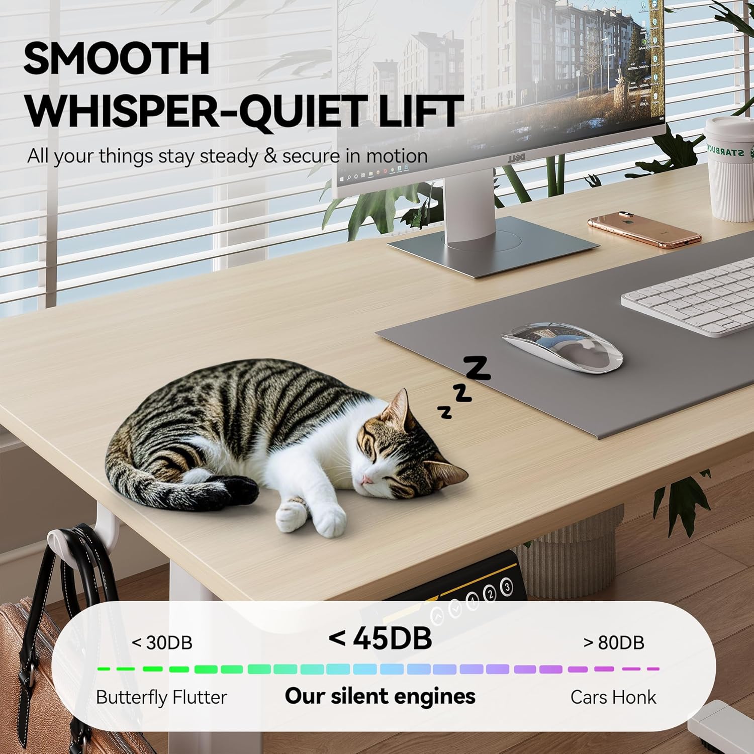 - 【Easy Installation】The electric office furniture includes detailed instructions and labeled hardware for hassle-free assembly. 2 hooks can hold headphones or bags to keep your workspace clean and clutter-free.