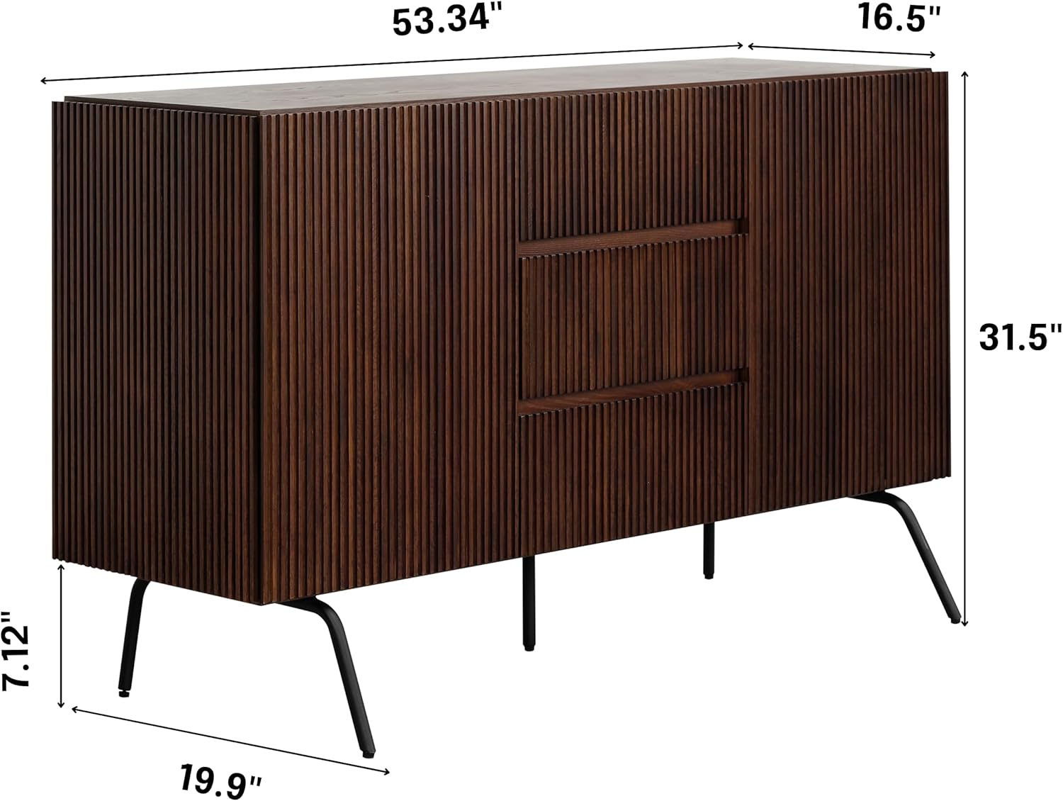 NTC Veil Sideboard with 2 Doors and 3 Drawers, Buffet Cabinet with Vertical Groove Design and Metal Legs, Storage Cabinet for Living Room, and Entryway, Effortless Assembly - Dark Walnut