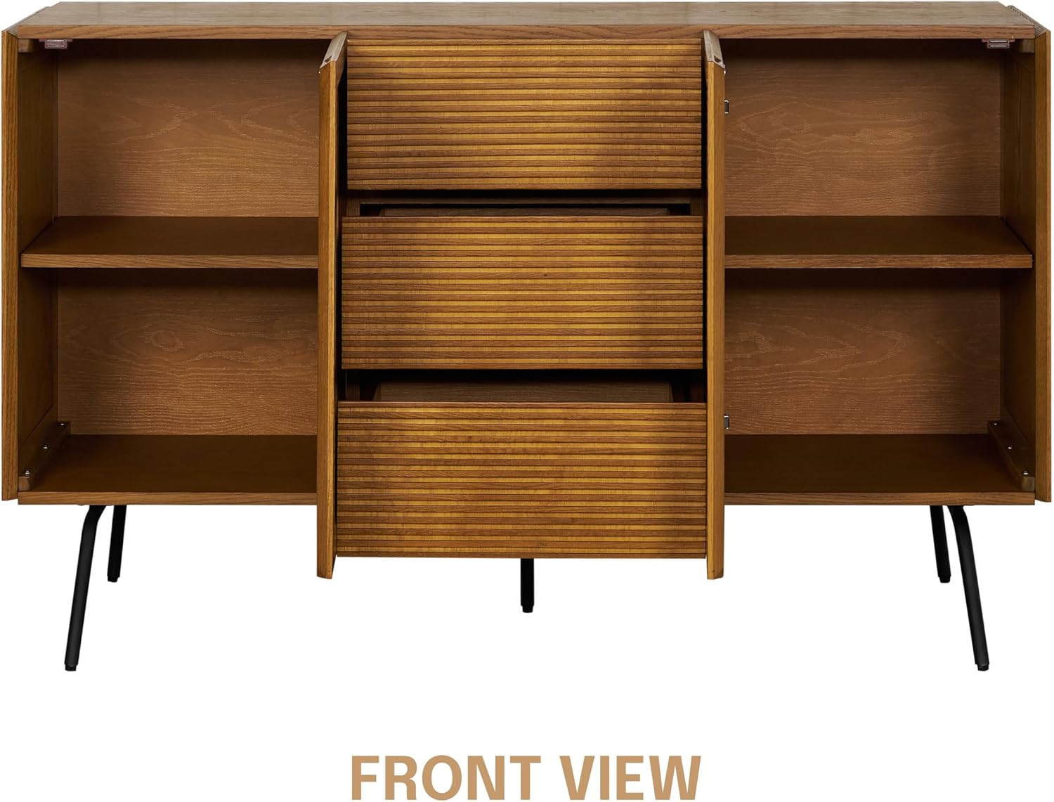 - AMPLE STORAGE SPACE – With two rattan-paneled cabinet doors and three spacious drawers, this sideboard offers the perfect balance between concealed storage and easy access to everyday essentials.