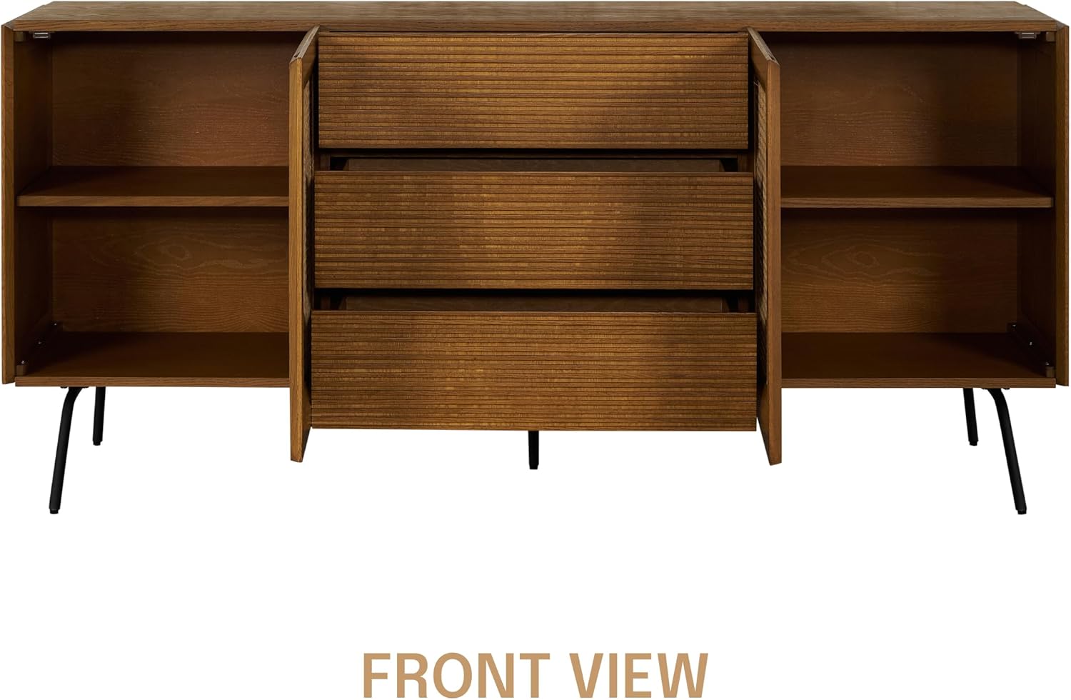 - AMPLE STORAGE SPACE – With two rattan-paneled cabinet doors and three spacious drawers, this sideboard offers the perfect balance between concealed storage and easy access to everyday essentials.