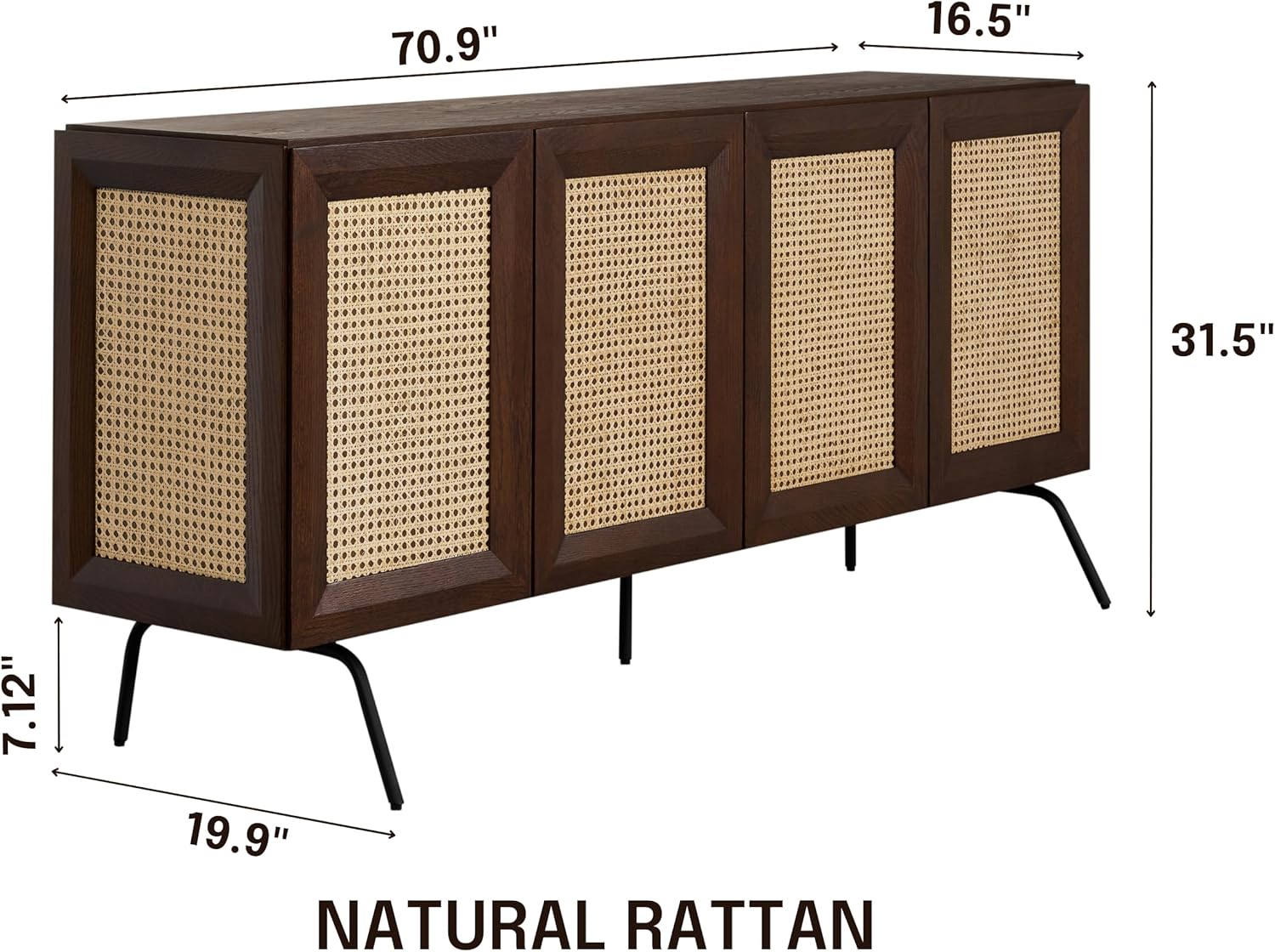- TIMELESS MODERN DESIGN – A sleek black wood finish combined with natural rattan panels creates a stunning blend of contemporary and rustic aesthetics, making this sideboard a stylish focal point in any space.
