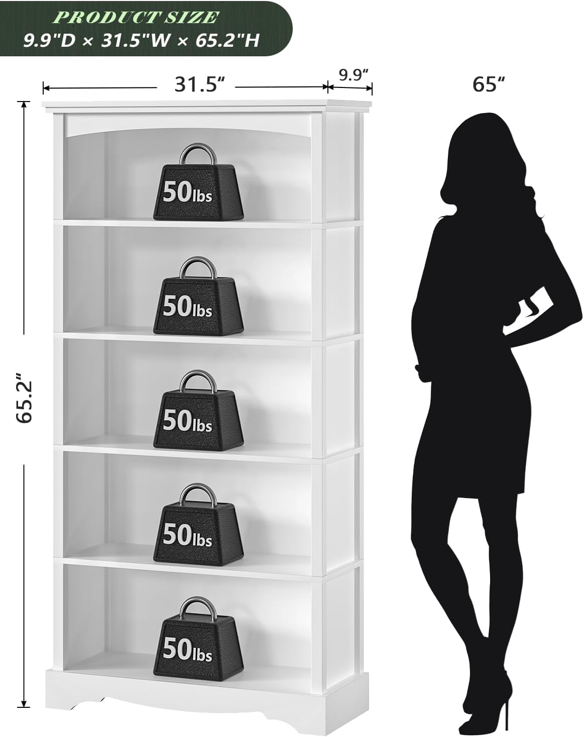 - Product Dimensions : 9.9"D x 31.5"W x 65"H