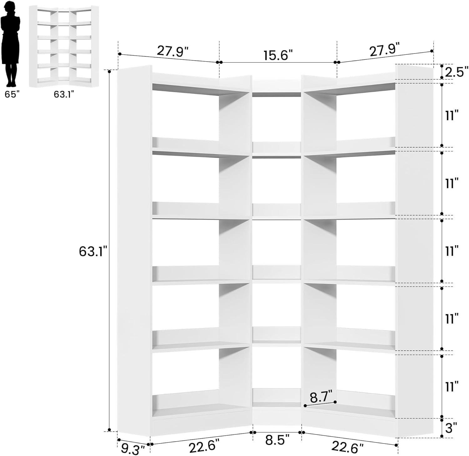 - Sturdy and durable: Constructed from high-quality scratch-resistant MDF boards, this tall corner bookshelf is built to withstand daily use and provide long-lasting durability. Each shelf can hold up to 80 lbs, offering ample storage capacity