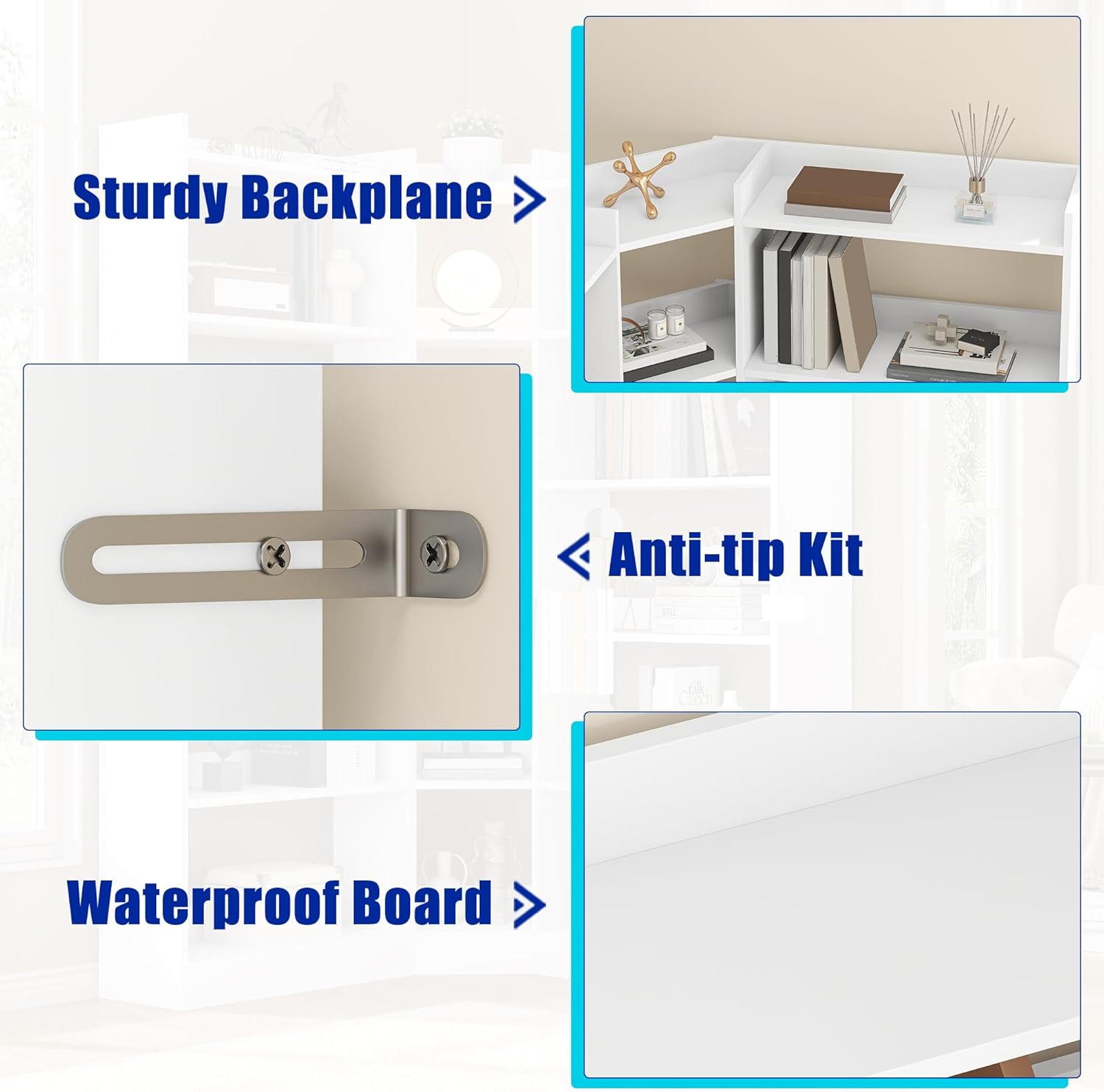 - Efficient Corner Utilization: Featuring a 90°right-angle design, this morden bookshelf optimizes corner space for practical and visually appealing displays. Not only showcasing cherished toys, ornaments, but also maintaining organized storage