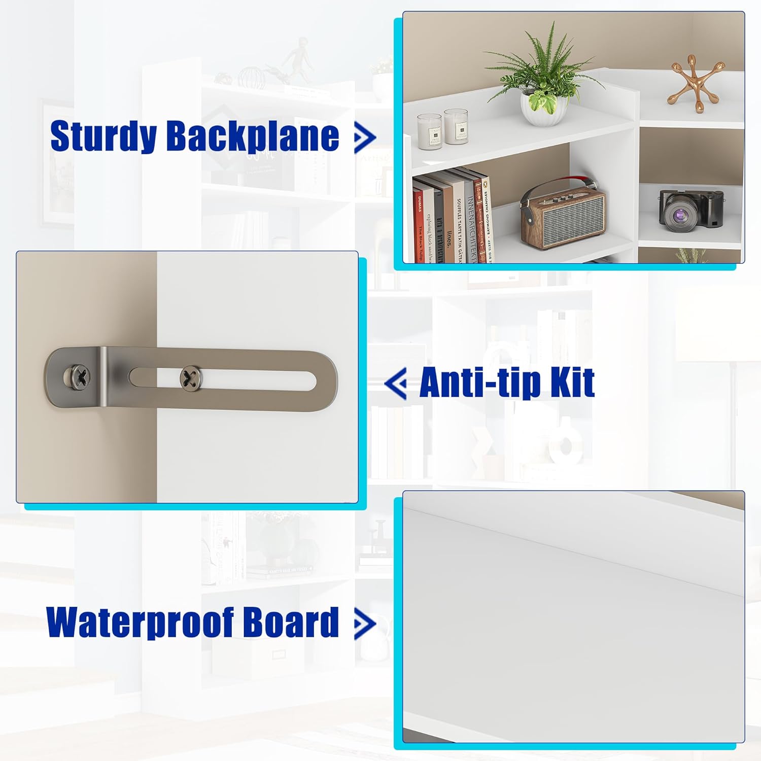 - Anti-Falling Baffle Design: This bookshelf is thoughtfully designed with side panels and baffles on each shelf, standing 2.8 inches high to prevent your cherished items from accidentally falling. This feature ensures safer and cleaner storage