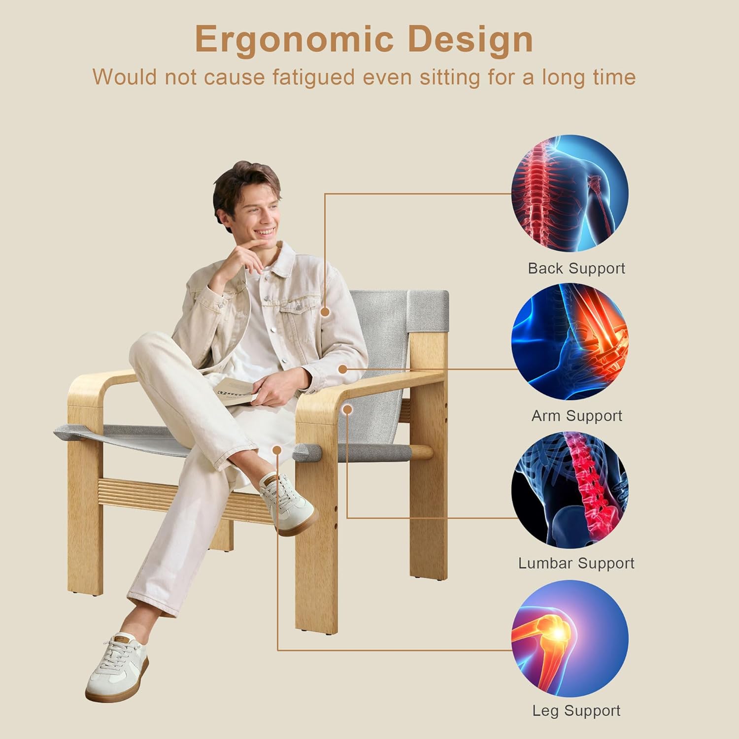 Ball & Cast Mid-Century Lounge Living Room Chairs,Accent Chair Wide Armrest with Comfortable Linen Fabric Armchair & Rubber Wood Frame,Detachable and Washable Seating Furniture for Reading,Light Grey