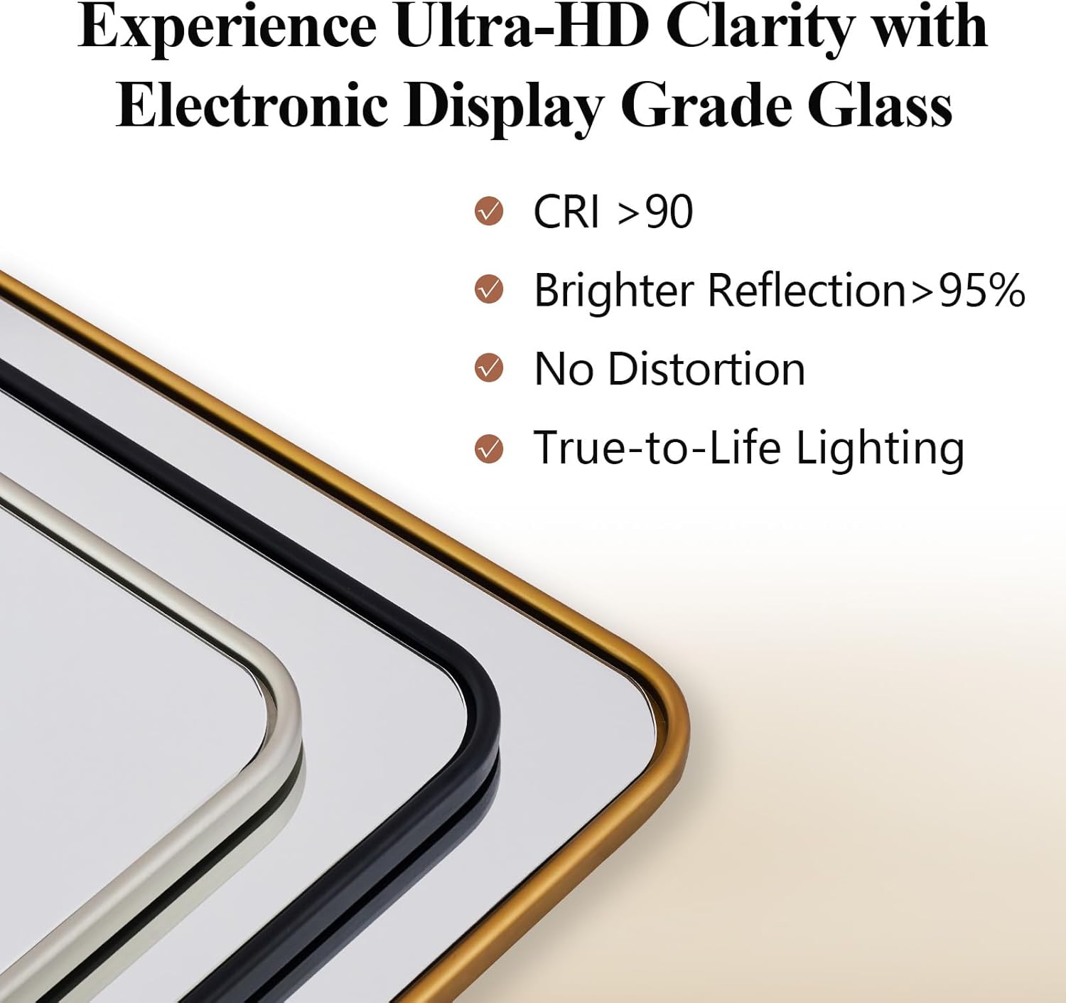 - Clear & Brighter Reflection: Made of high-grade copper-free silver glass, our 24 x 36 bathroom mirror provides sharp reflection and floods the room with bright light. Passing salt-spray tests, its oxide resistance ensures long-term use, meeting your daily needs