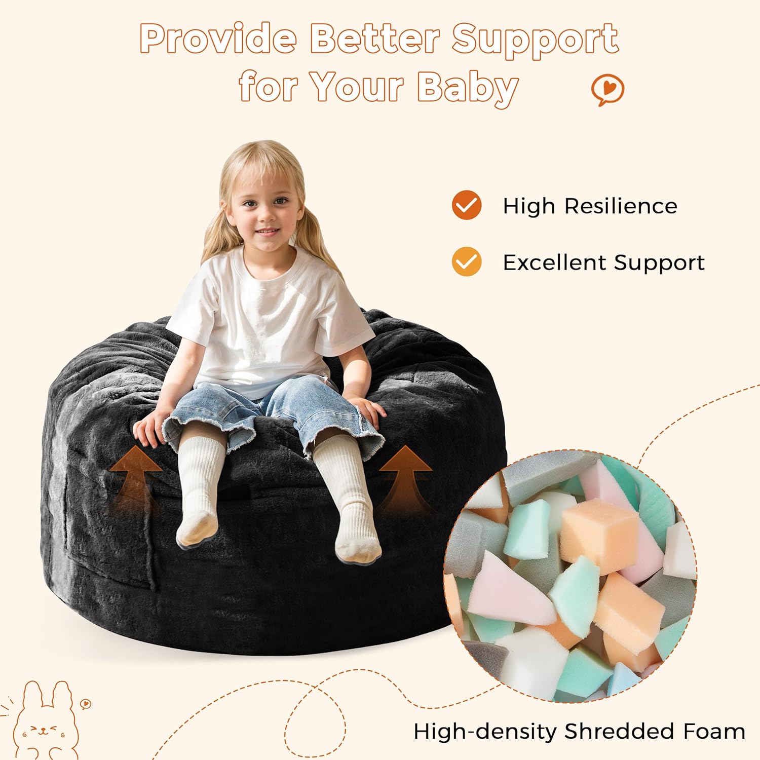 MAXYOYO Kids Bean Bag Chair, Stuffed Faux Fur Bean Bag for Toddler, Ultra Soft Floor Sofa with High-Density Foam Filling, Lazy Chair for Living Room, Playroom, Nursery Room