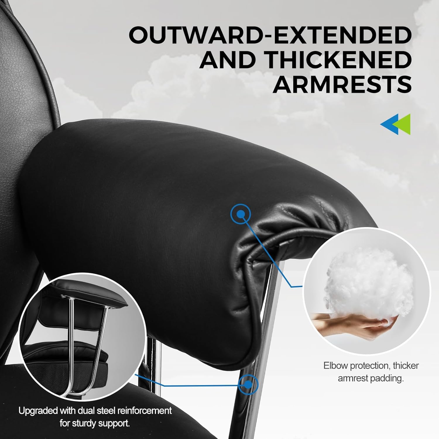 - 【Sofa-like Seat】 The executive chair features a pocket spring lumbar support for elasticity and heat dissipation during prolonged sitting. The widened seat, free of restricting side wings, along with an adjustable footrest, allows comfortable seating in any position. It's as casual and free as sitting on your own sofa
