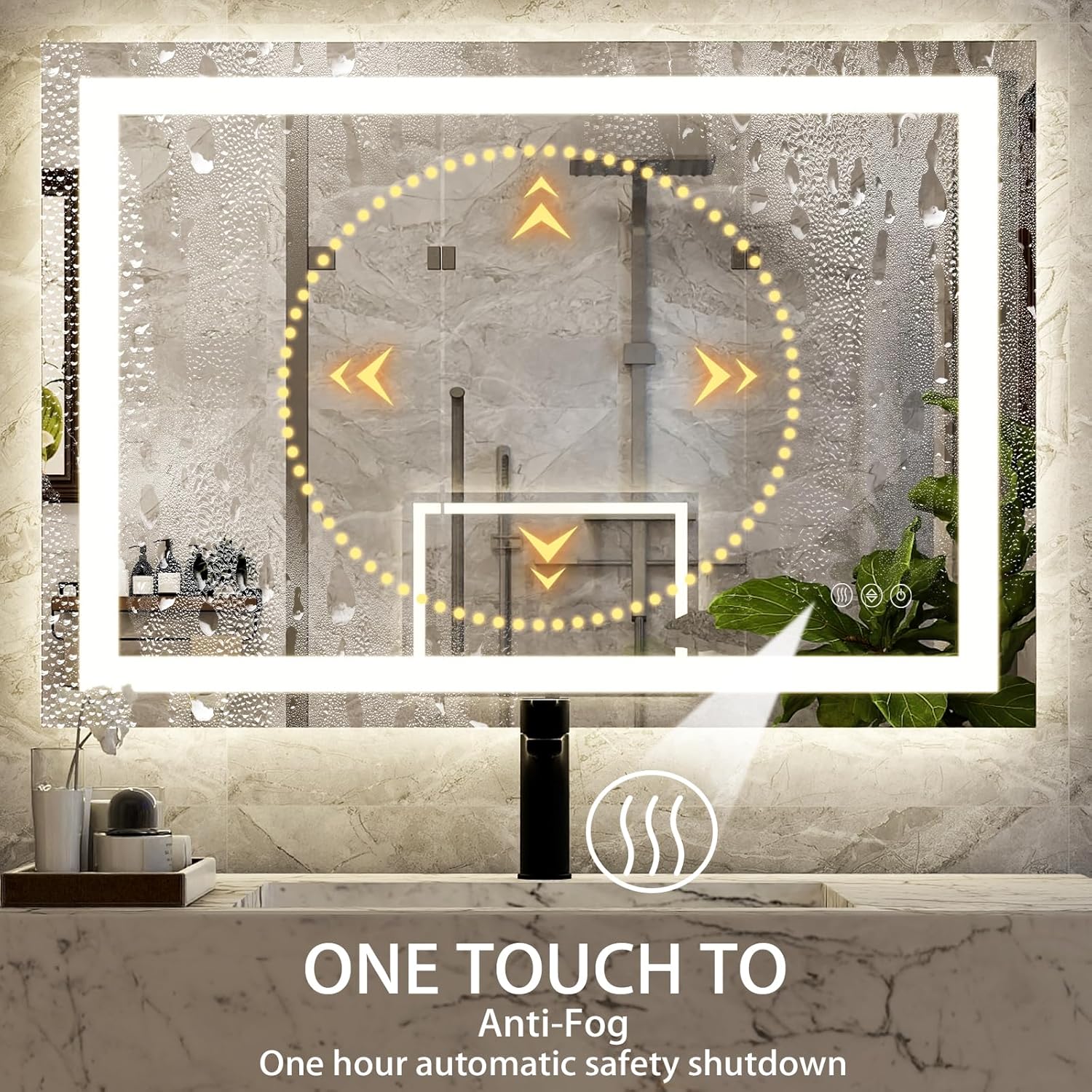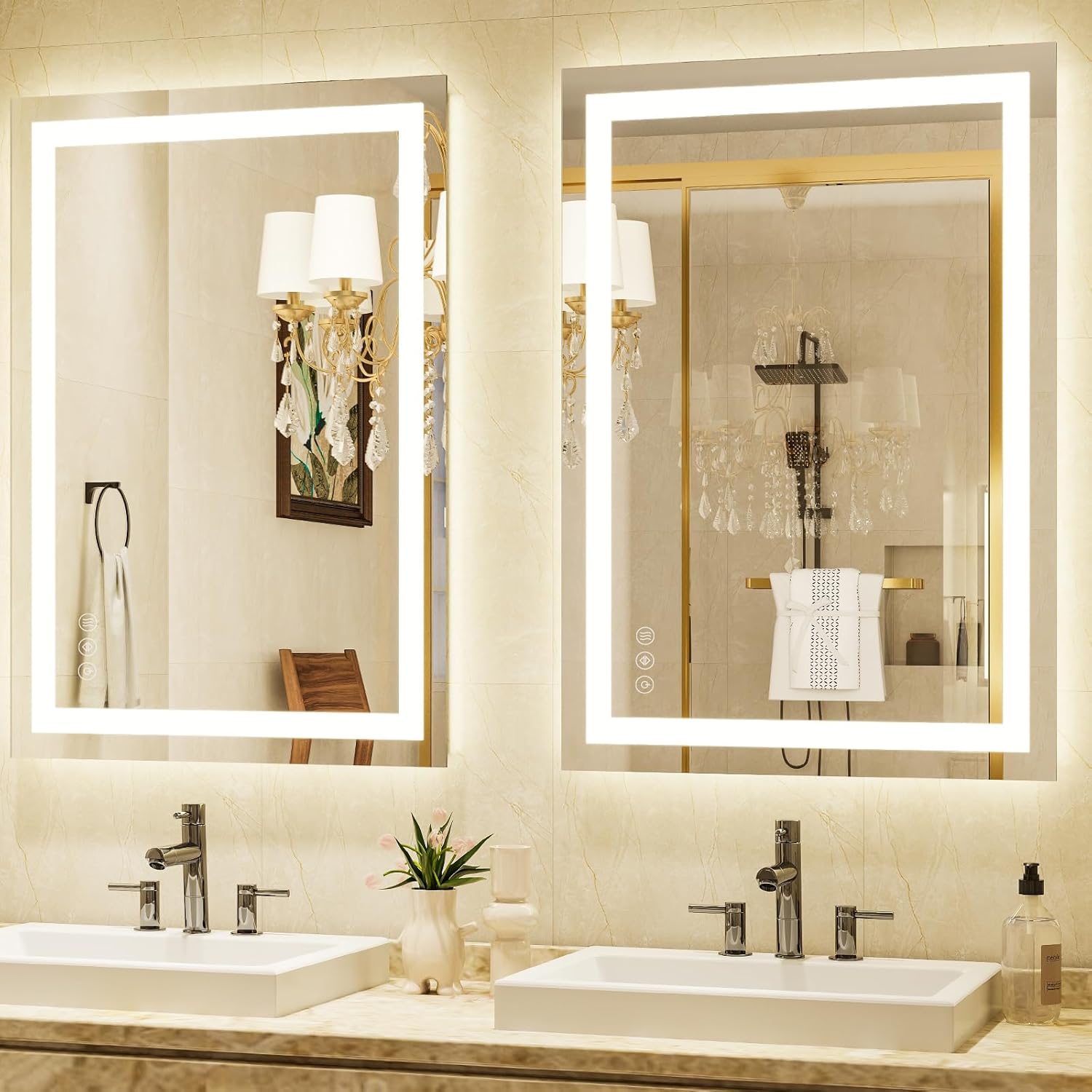 - Functional Intelligence: This LED bathroom mirror is equipped with a waterproof energy-saving light strip, allowing you to switch between backlight and front light with a light touch. The light is stable without stroboscopic. The wall mirror has 3 adjustable lighting modes: 3000K warm light, 4000K natural light, and 6000K white light, which can be switched at will. The bathroom vanity mirror is equipped with an intelligent defogging function, saying goodbye to fog troubles. From morning washing to late-night skin care, it can accurately fill the light and create an ideal atmosphere