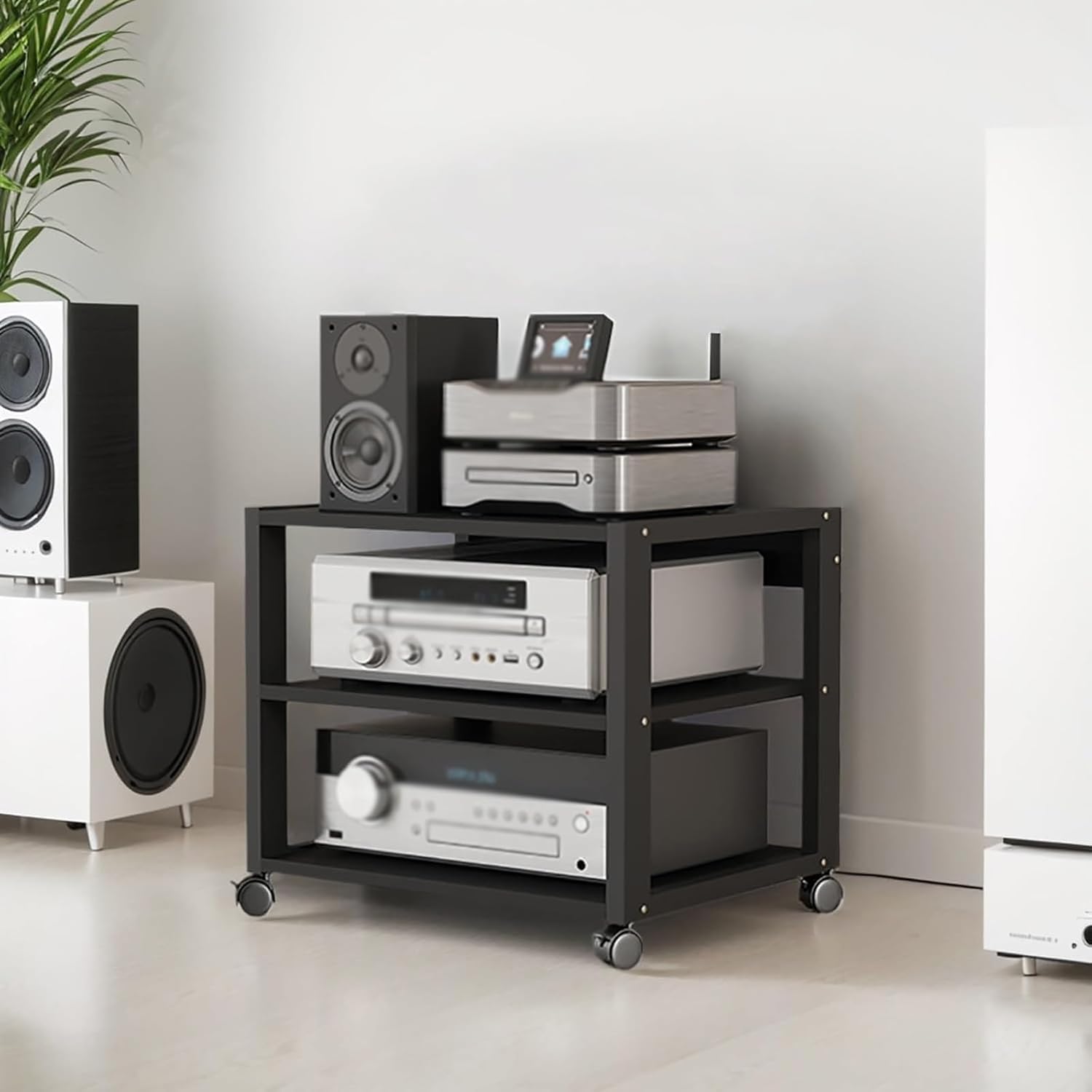 - VERSATILE USE: The stereo stand can be used to place amplifiers, speakers, mixers, karaoke machines, printers, books, stationery, potted plants, etc., suitable for home, office, shop, etc