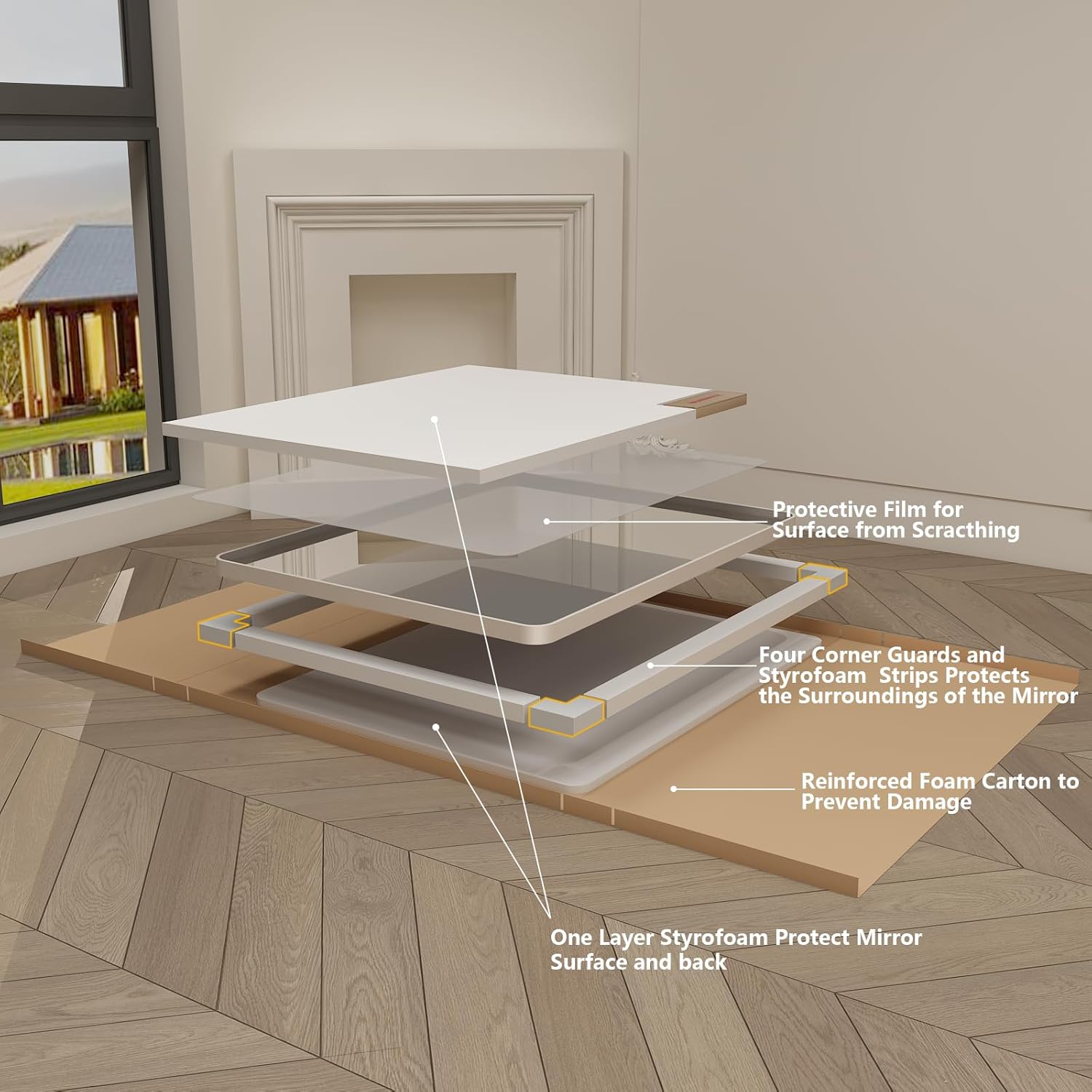 - 【Impressive Package】The packing protects the mirror completely. We are committed to providing safe and all-round protection of the mirror packaging to ensure that the mirror is delivered to the customer intact. We are responsible for any damage or breakage in arrival.