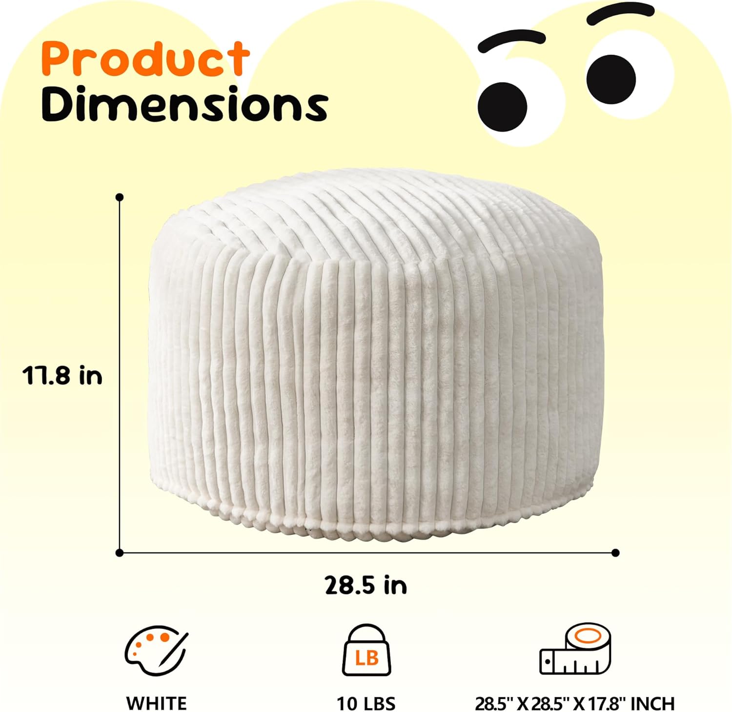 Hobestluk Bean Bag Chairs 2.5FT Bean Bag Chair with Memory Foam Filled & Stripe Plush Cover Small Bean Bag Chairs for Playroom, Living Room, Bedroom (White)