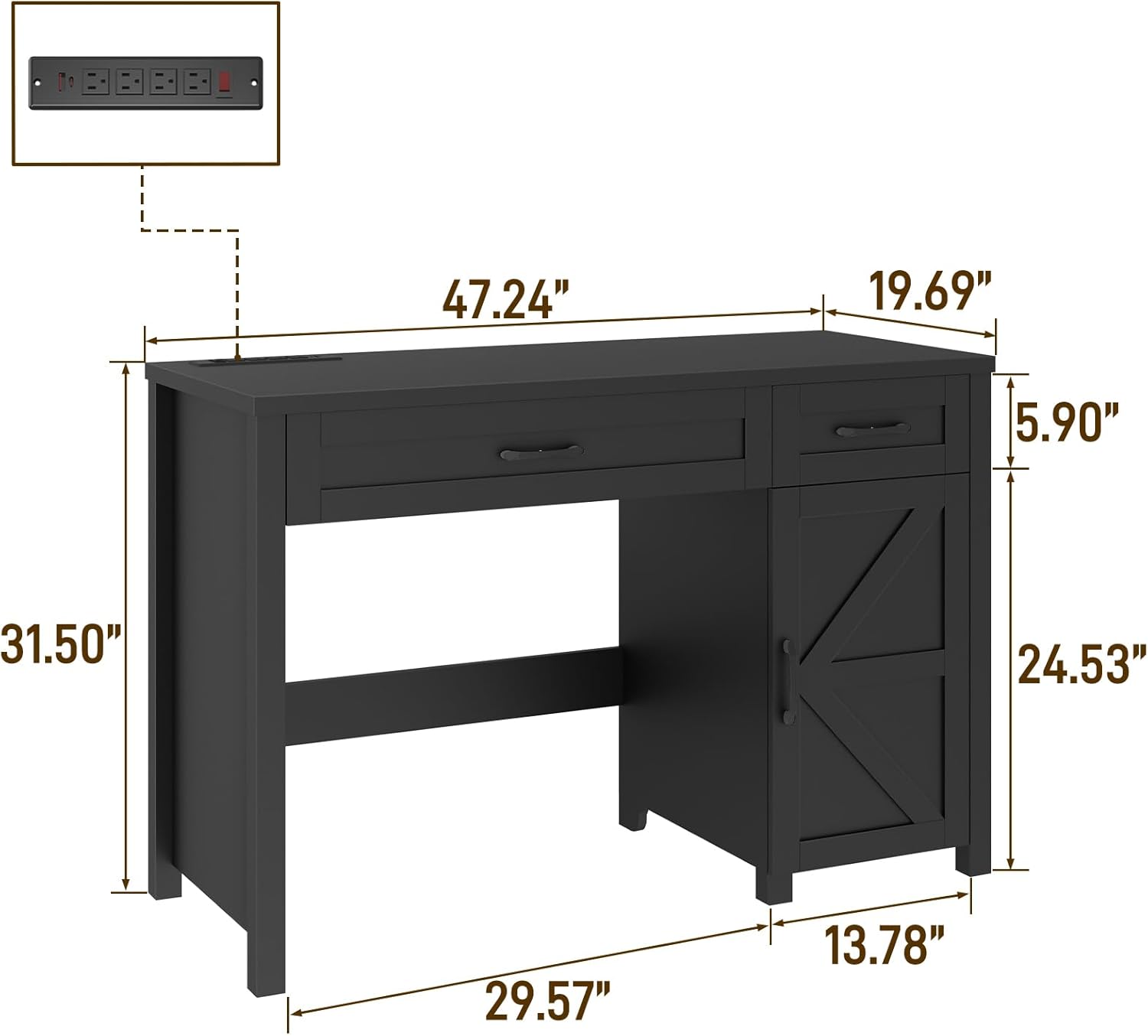Farmhouse 47" Executive Desk, Computer Desk with Drawers and Storage Cabinet, Workstation Computer Desk for Home Office, Study.(Pure Black)