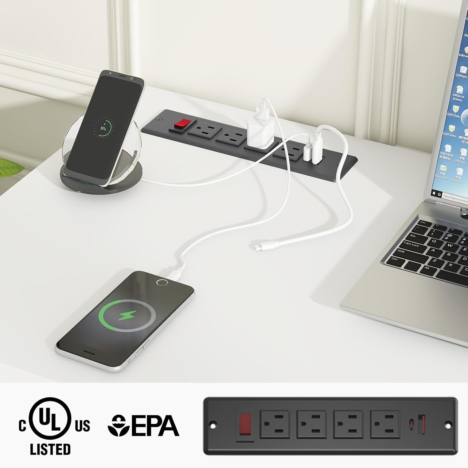 - 【Convenient Charging Hub】Our desk features a convenient charging station with 4 outlets and 2 USB ports, capable of powering up to 6 devices simultaneously. The included on-off switch ensures safe electricity usage and offers a one-button power-off function for added security. Perfect for charging cell phones, tablets, laptops, and other electronic devices, this charging hub keeps your workspace tidy and organized.