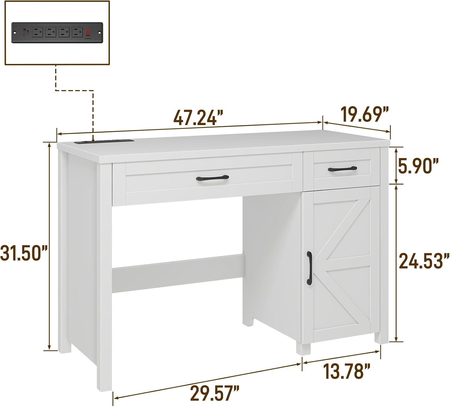Farmhouse 47" Executive Desk, Computer Desk with Drawers and Storage Cabinet, Workstation Computer Desk for Home Office, Study.(Cream White)