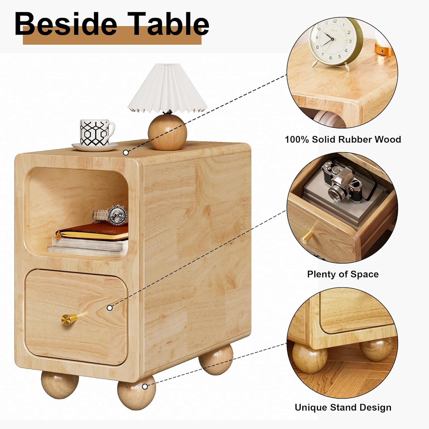 - 【Solid Rubberwood Nightstand】 Wooden nightstand is carefully made of high quality rubberwood to ensure its durability and stability. Rubberwood not only has high strength and long service life, but also has excellent wear resistance and is suitable for long-term use