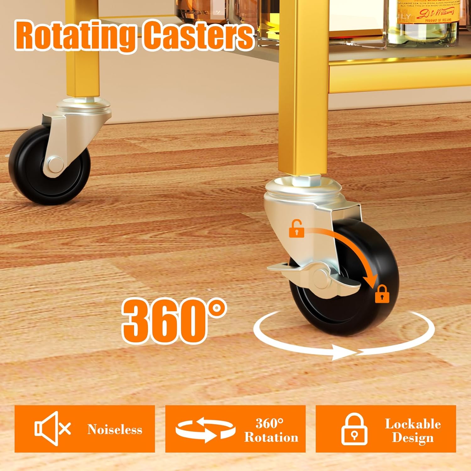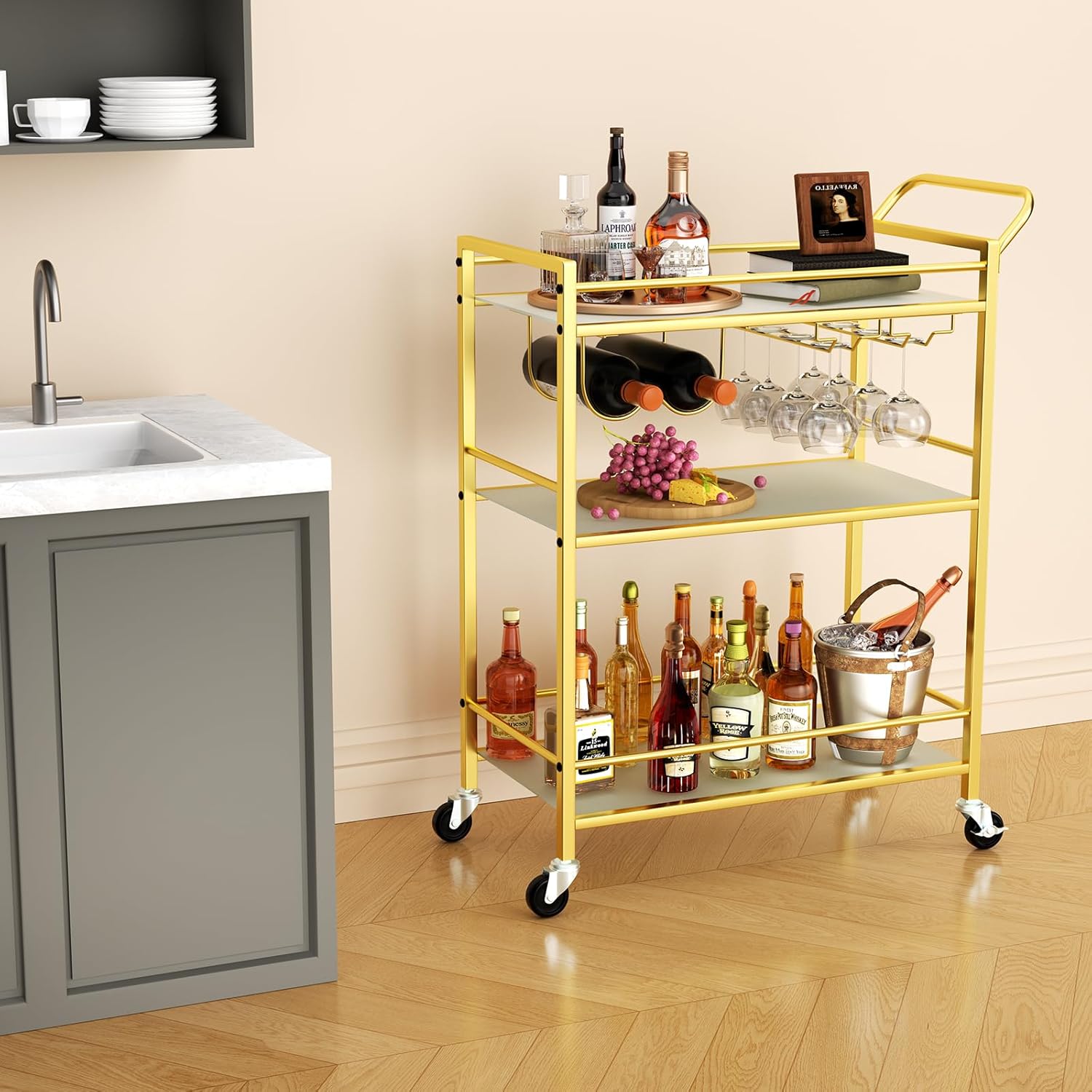 - 【Versatile Serving Cart for Home】This 3-tier bar cart is more than a bar cart—it seamlessly serves as a drink station, kitchen cart, coffee cart, tea cart, or microwave stand. Its open and flexible design fits beautifully in your dining room, living space, or kitchen, bringing both function and charm to your daily routine. A must-have among rolling bar carts for home lovers.