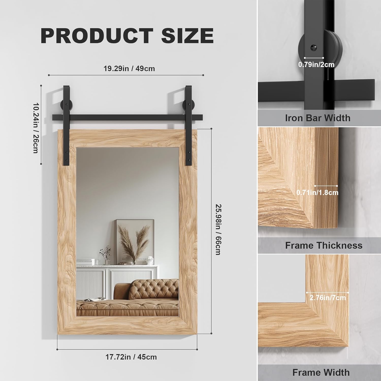 - Versatile Decorative Mirror: With its sturdy construction and explosion-proof, scratch-resistant surface, this mirror is perfect for bathrooms, bedrooms, entryways, and living rooms, complementing both rustic and modern interiors.