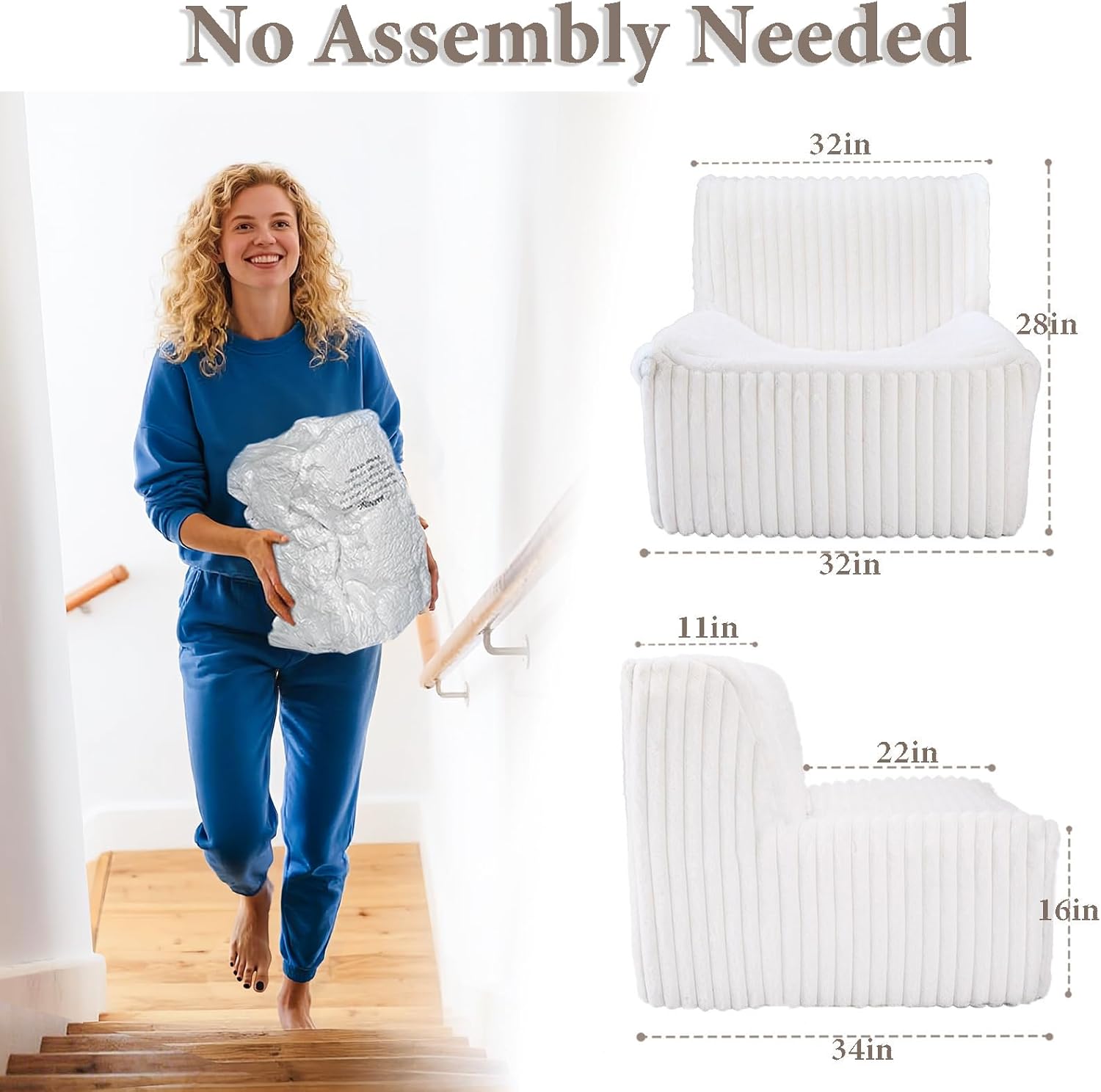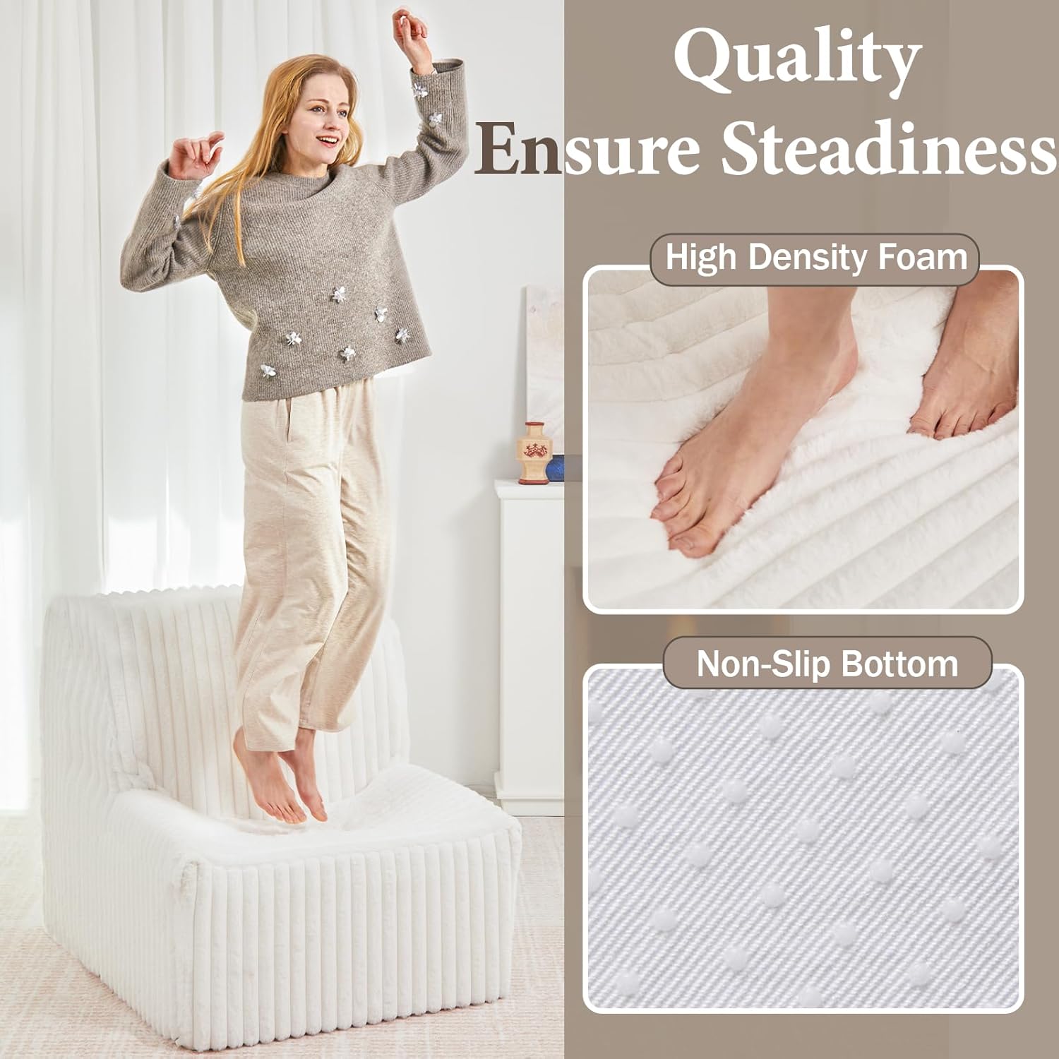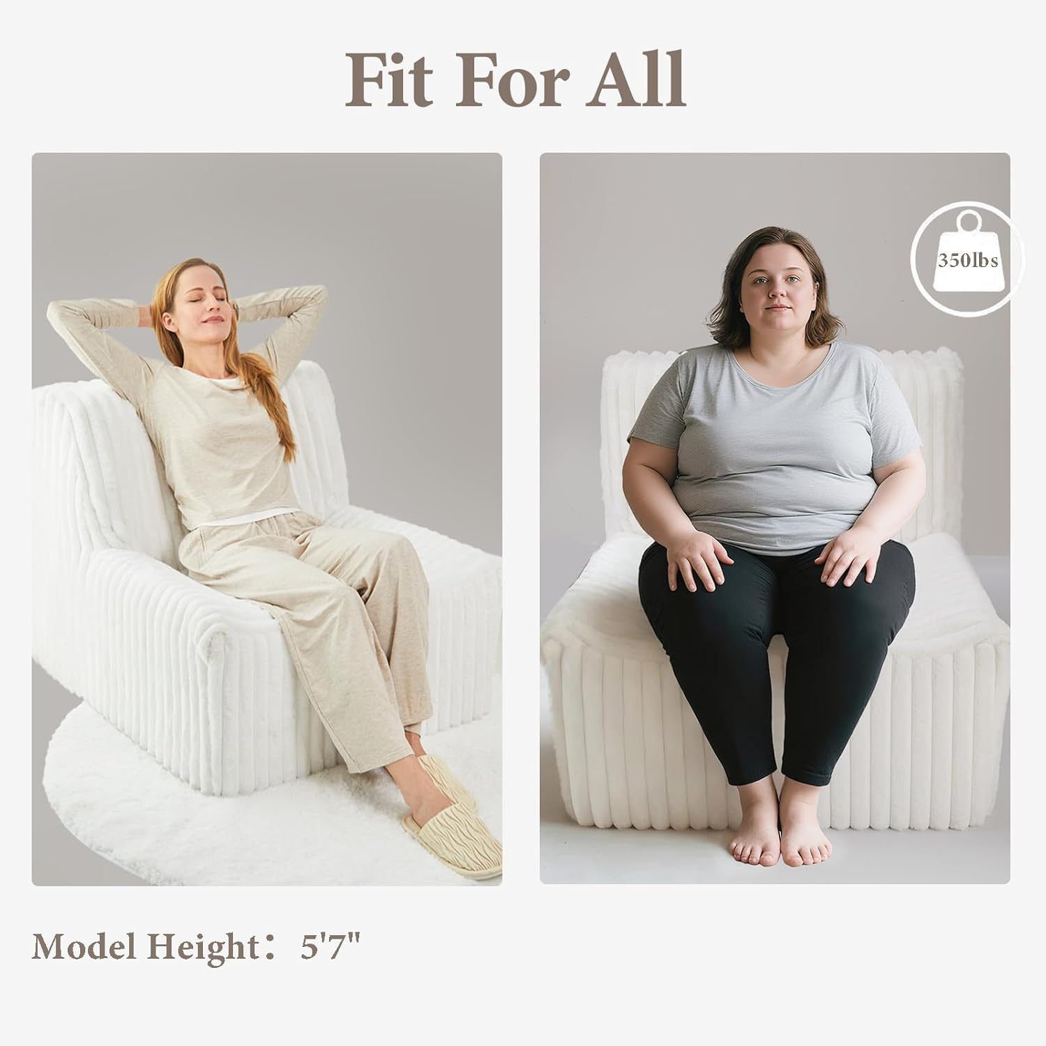 Trenda Super Comfy Lazy Sofa Chair, Soft Faux Fur Accent Chair for Living Room, Lounge Armless Floor Couch for Bedroom, Cozy Modern Single Sofa with Mememory Foam to Reading, Gaming (White)
