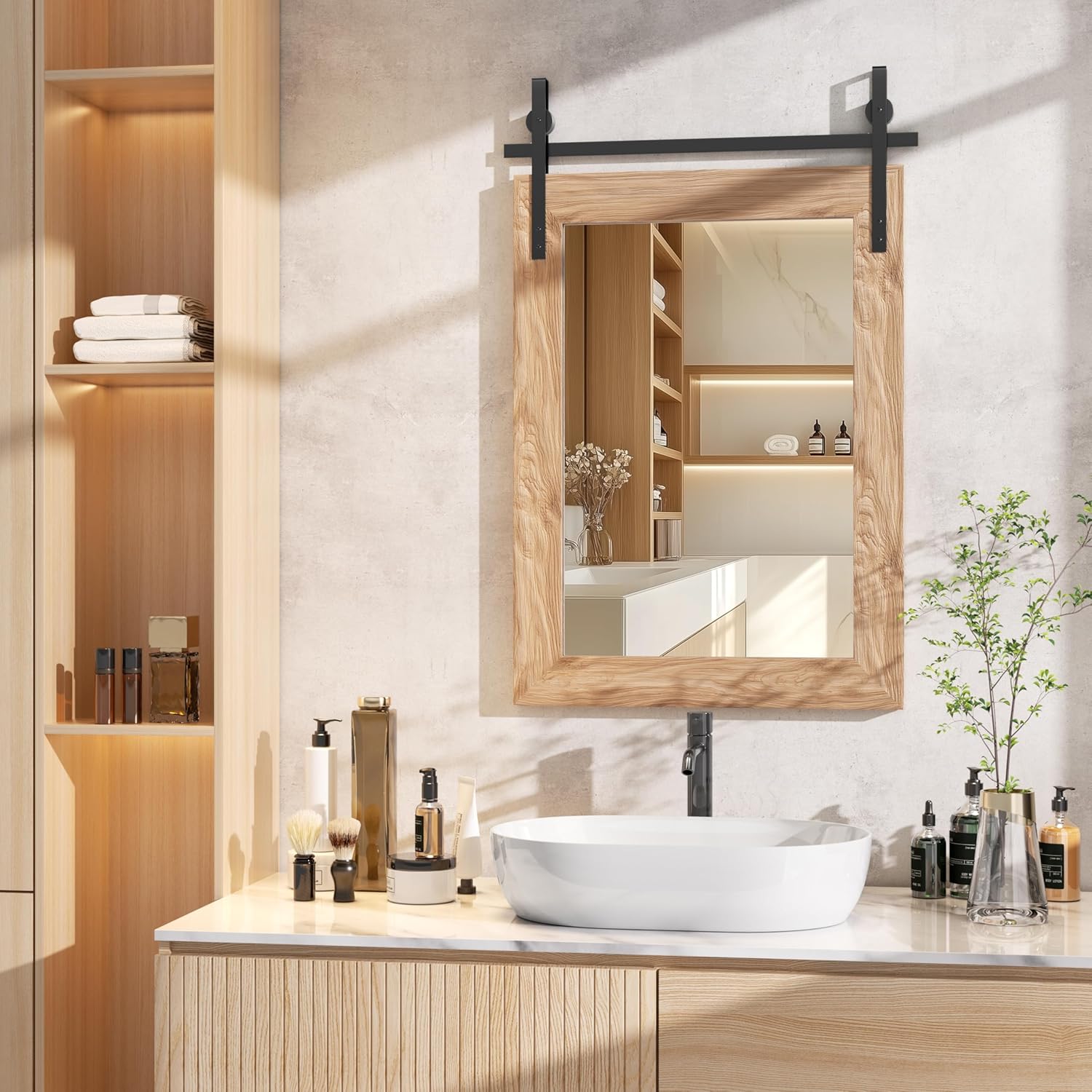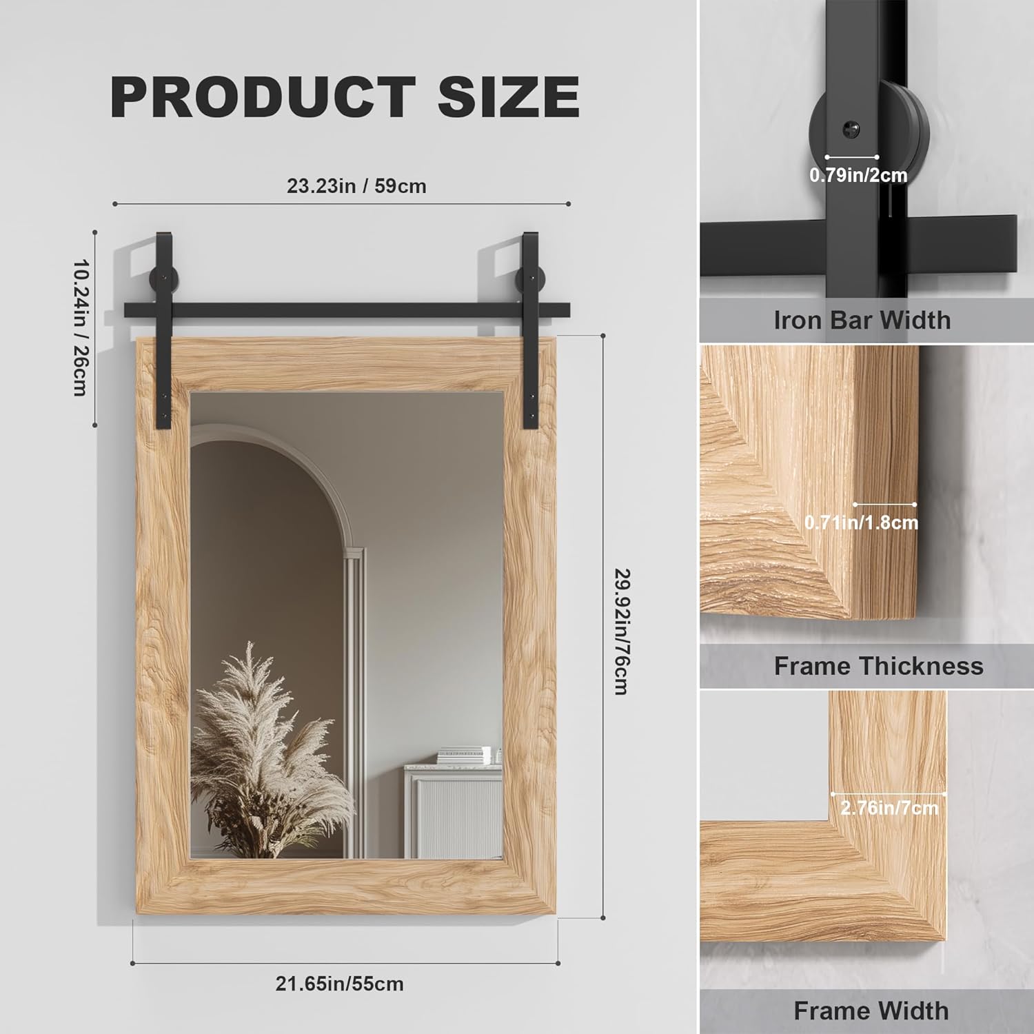 - Versatile Decorative Mirror: With its sturdy construction and explosion-proof, scratch-resistant surface, this mirror is perfect for bathrooms, bedrooms, entryways, and living rooms, complementing both rustic and modern interiors.