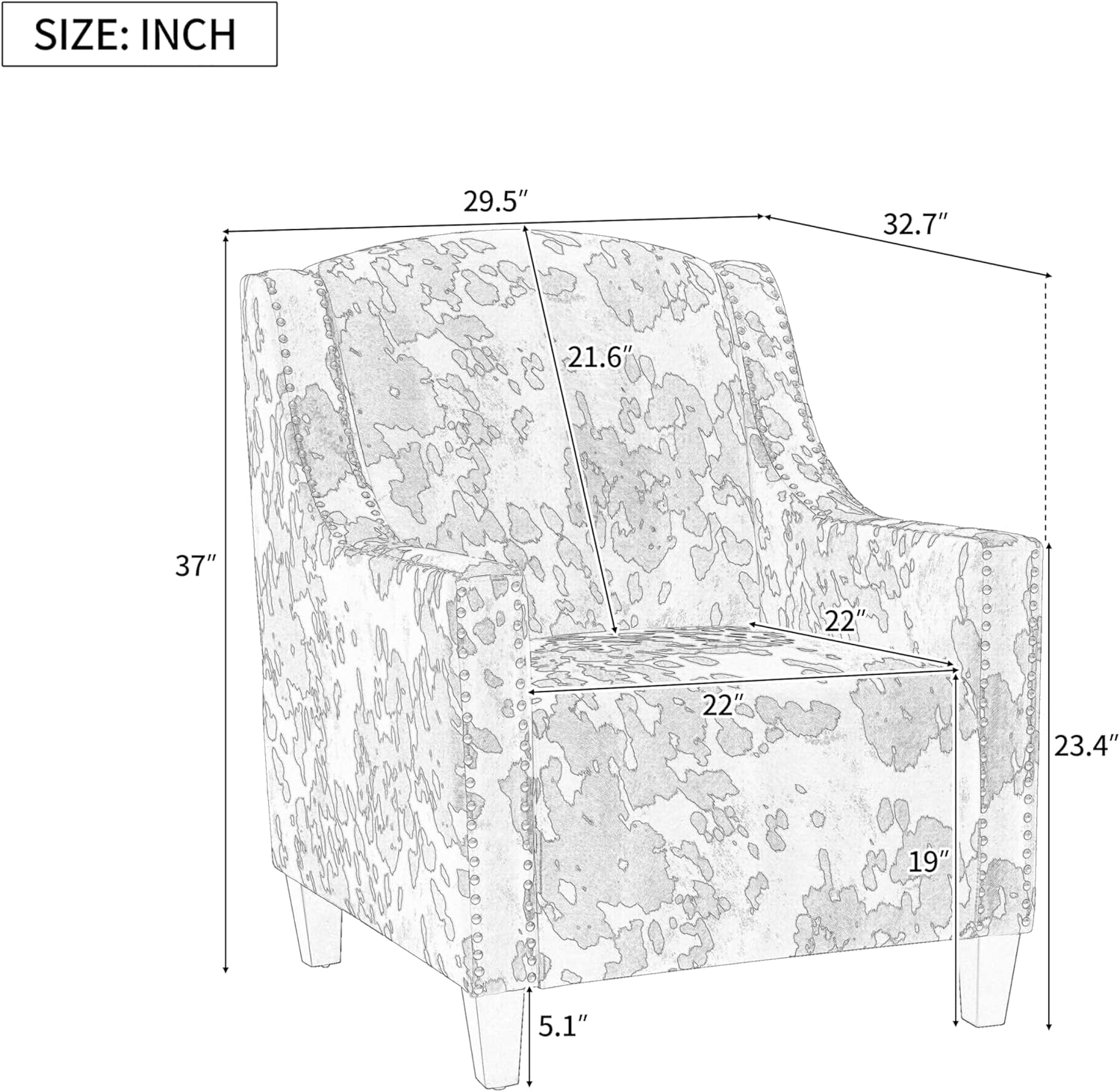 - 【Classic Cow Print Fabric:This accent chair is upholstered in a timeless cow print fabric that adds a vintage charm to your home decor. The soft texture not only enhances comfort but also makes a bold style statement in any room.