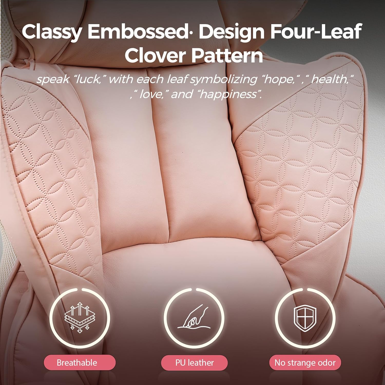 - 【Spring Lumbar Support & 360° Even Pressure Seat Cushion】This comfy computer chair features dual-layer high-density sponge in the backrest, built in spring back cushion and 3D saddle-shaped seat provides segmented support that adjusts to the unique curves of your body, effectively relieve fatigue and pain in the lumbar spine and hip. Meantime, the wider chair cushion wraps better around your legs and buttocks for maximum support and softness