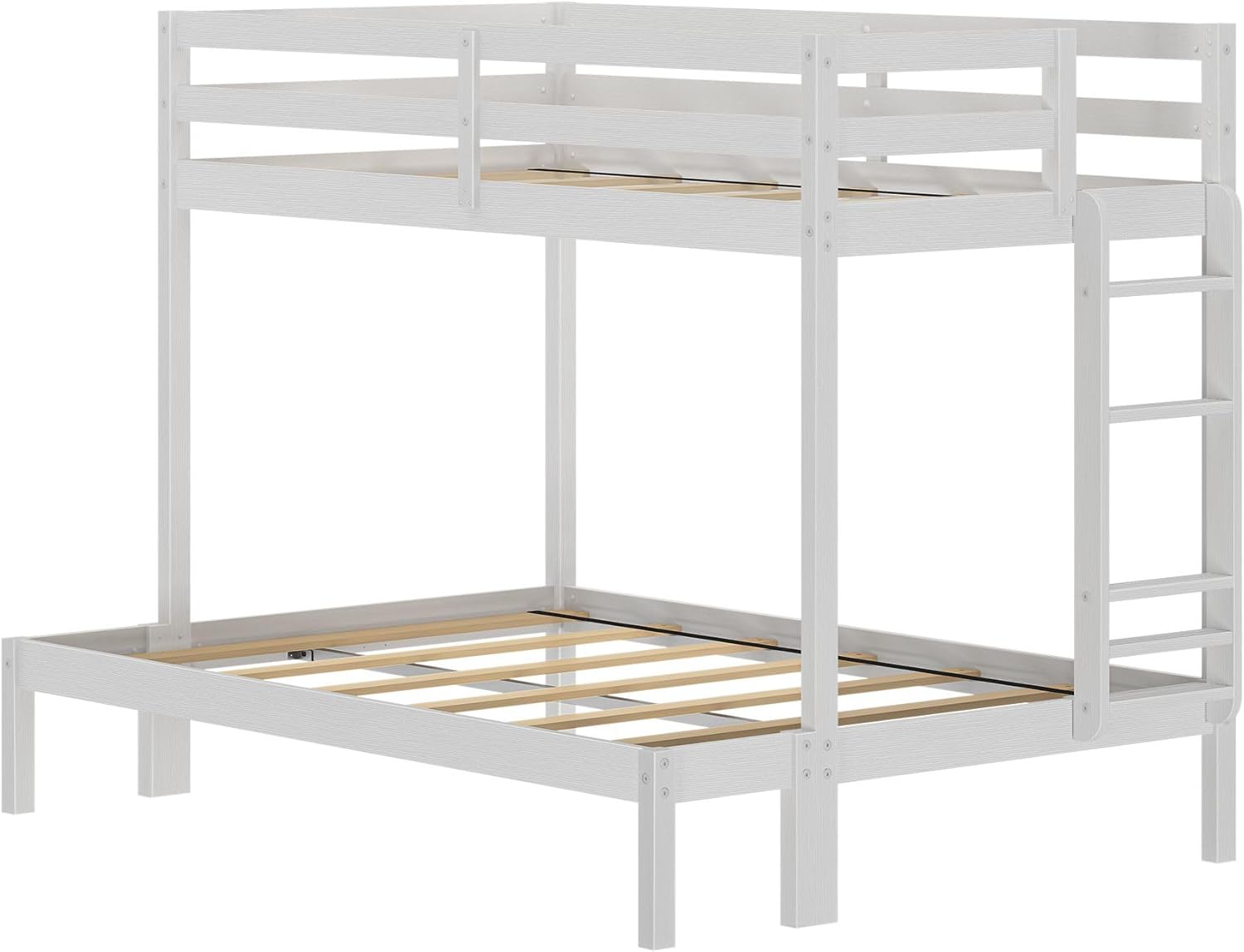 Grain & Grove Bear Twin Over Full Bunk Bed, Sturdy Bunk Bed Frame for Kids, Plywood Bunk with Ladder, Guardrail, and Slats, No Box Spring Required, Brushed White