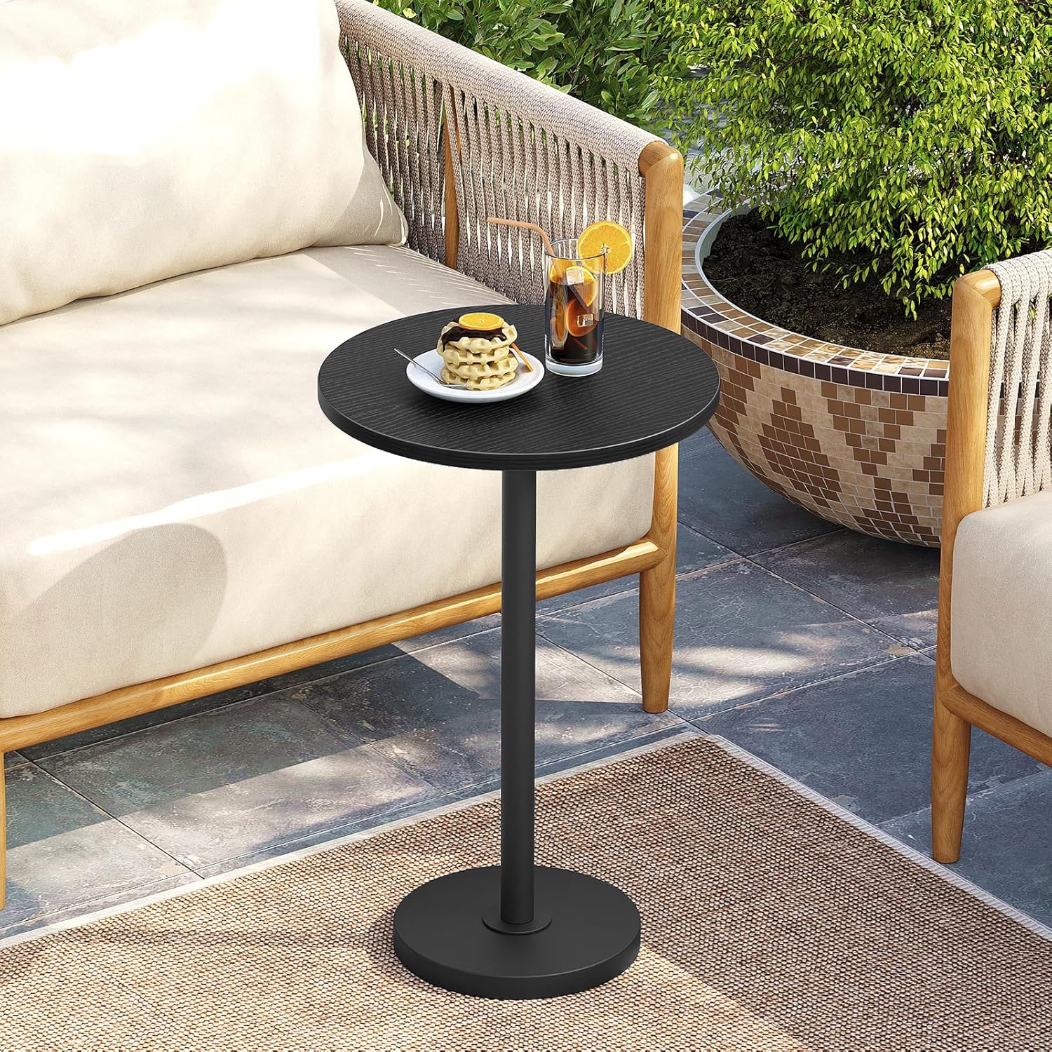 - Compact Space Companion: End table tailored for small spaces, this round martini table stands at a perfect height of 24.7 inches with a 11.8-inch diameter top. Ideal as a storage aid beside your sofa or bed, it maximizes the utility of every little corner