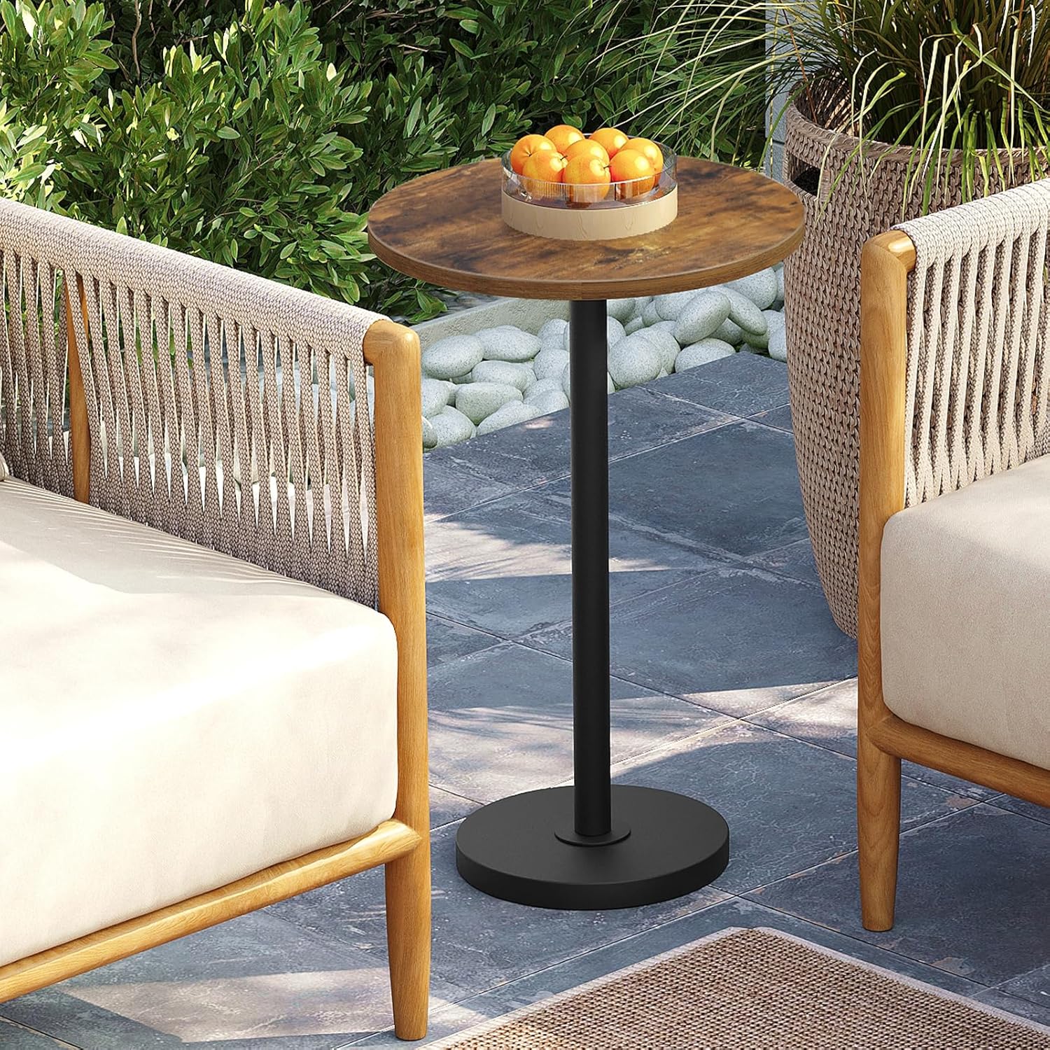 Round Side End Table for Small Spaces, Pedestal Style Martini Drink Side Table in Living Room, Bedroom, Dormitory, Rustic Brown and Black ET30BR