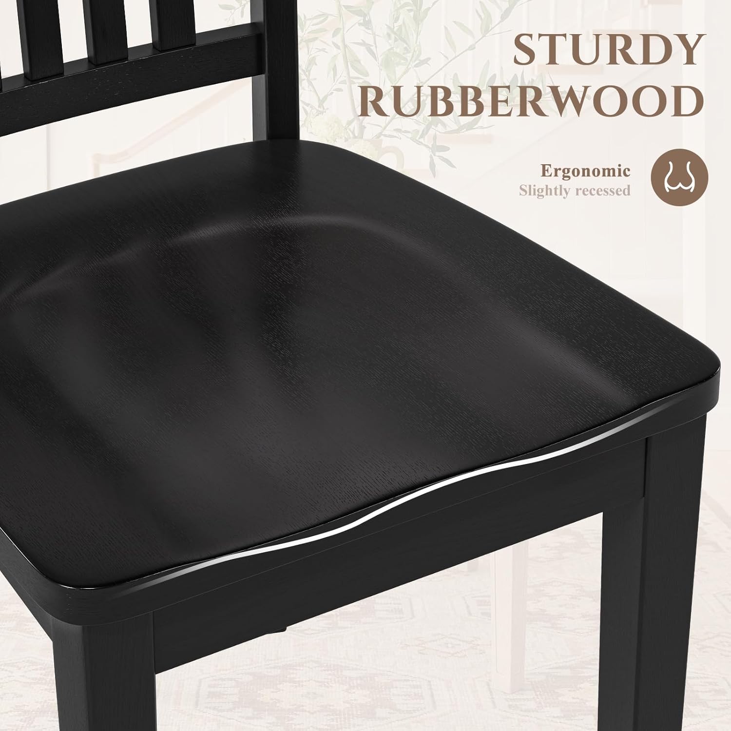 - Pure Natural Comfort: Crafted from premium natural rubber wood, our kitchen side chairs prioritize comfort without compromising on sustainability. The slightly curved backrest cradles your body, offering unparalleled comfort during extended dining sessions.