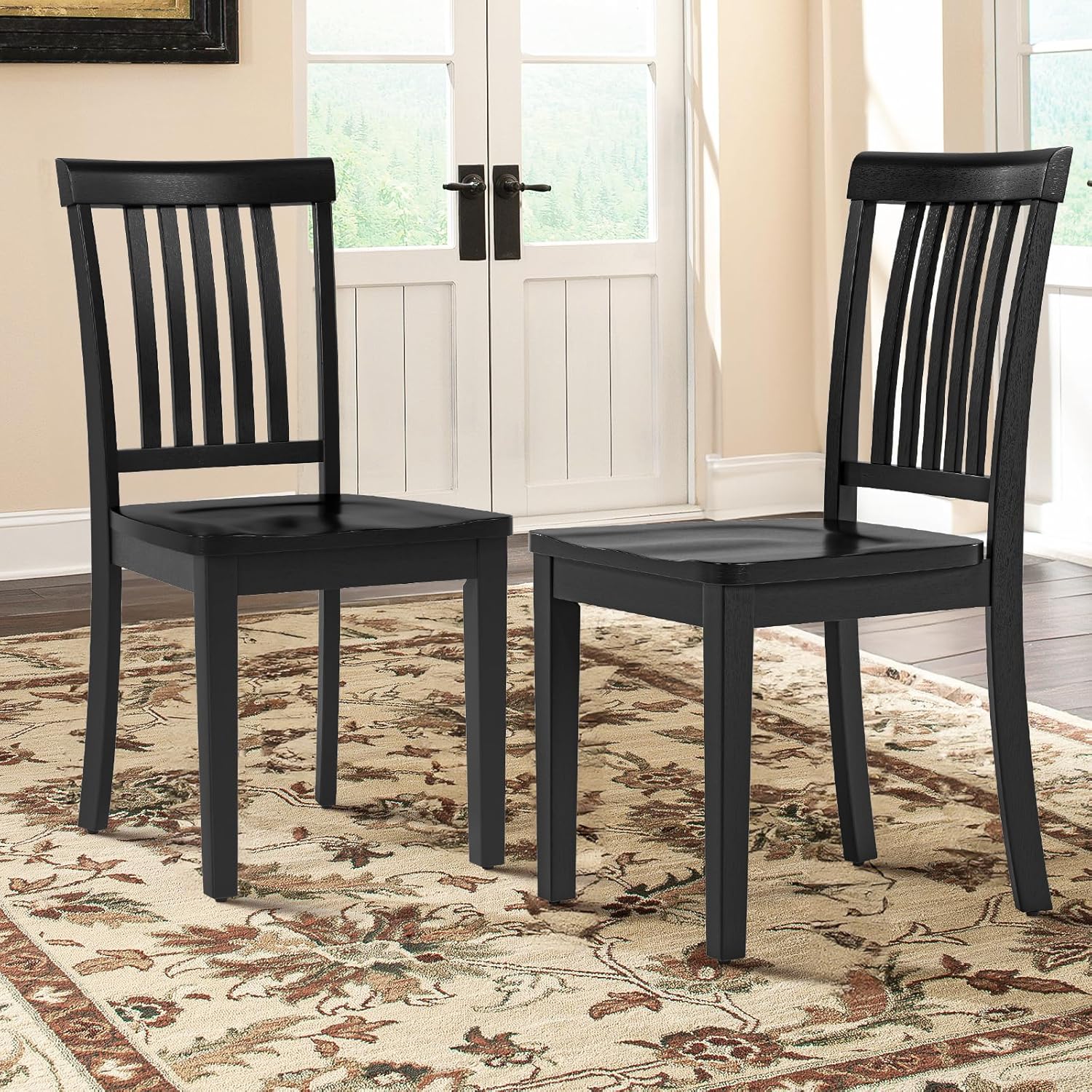 COLAMY Wooden Dining Room Chairs Set of 2, Spindle High Back Windsor Kitchen Side Chair, Farmhouse Dining Chairs for Kitchen, Dining Room, Black