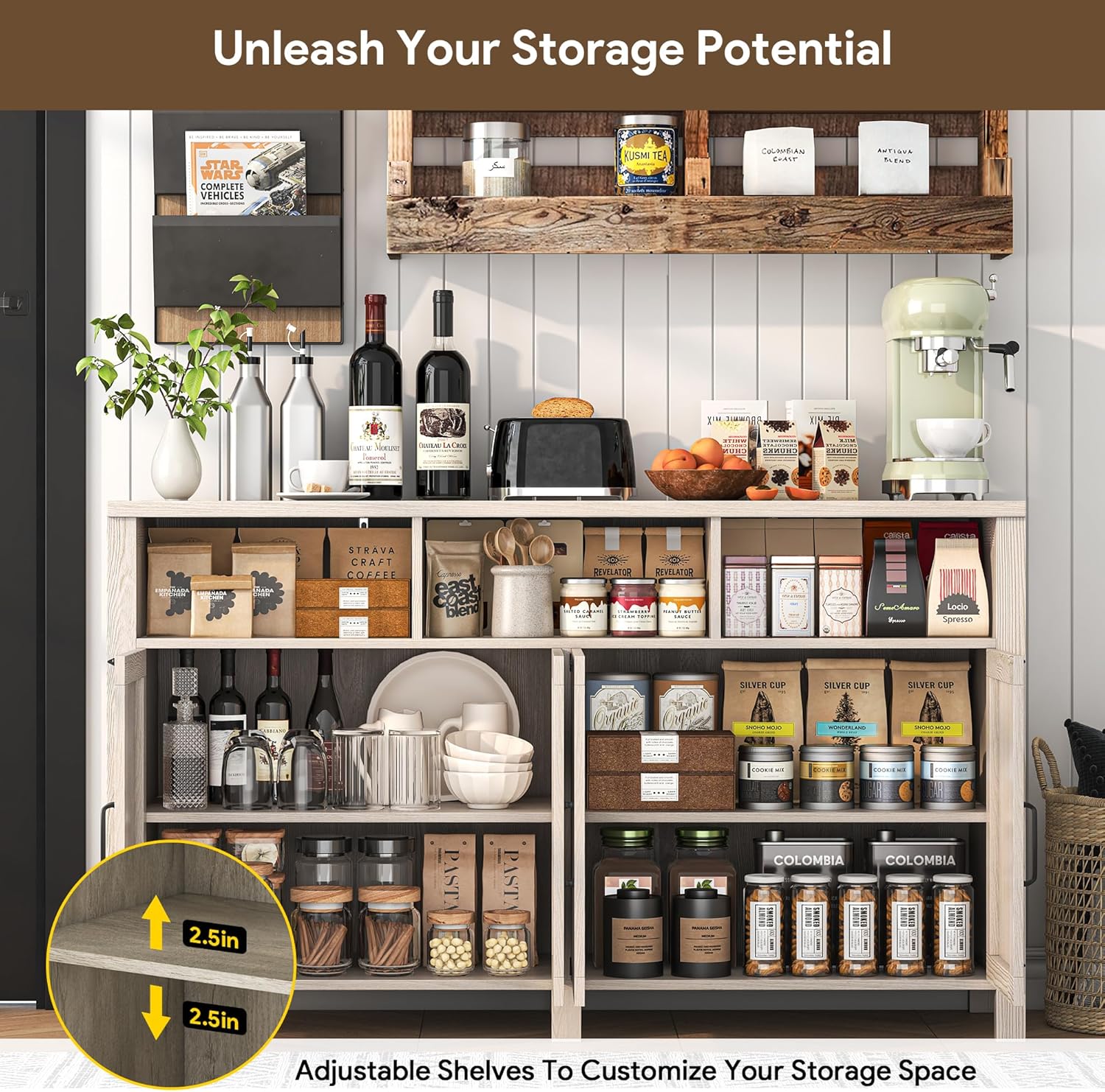 Buffet Cabinet with Storage Farmhouse with 4 Doors, 55'' Large Kitchen Storage Cabinet Wood Coffee Bar Buffet Sideboard for Kitchen, Dining Room, Entryway