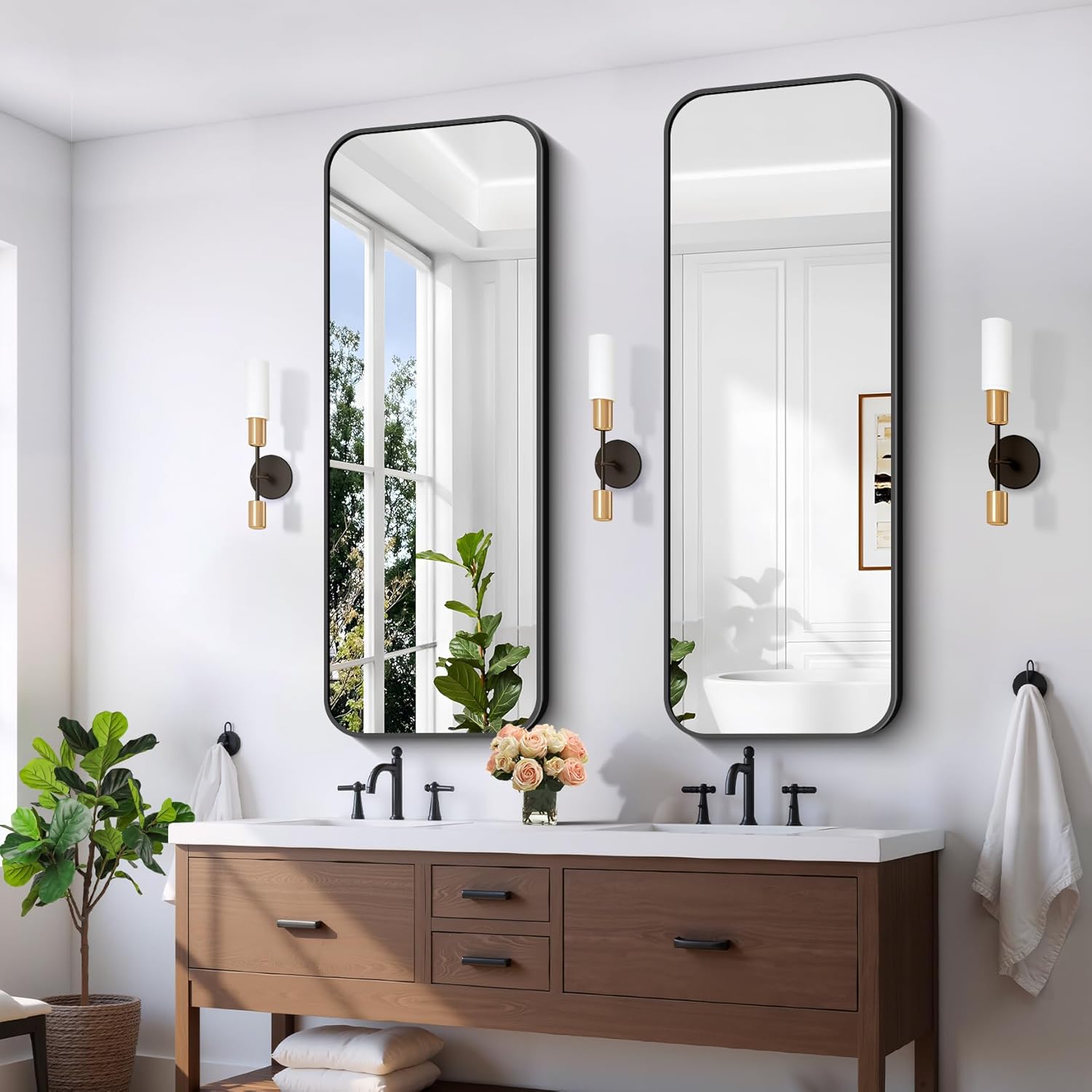 - Rounded Corner Design:The rounded corner rectangle mirror makes your bathroom more elegant and classic, which especially attracts your eyes. Ideal for bathroom decoration and make the space more brighter and larger.