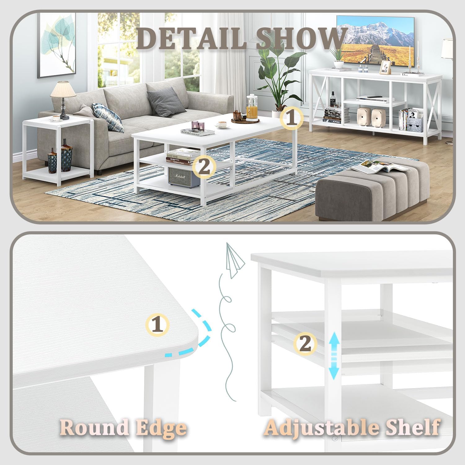 - Easy Assembly, Exceptional Support: With clear illustrated instructions and all necessary hardware included, this white coffee table assembles in 15 minutes. Have concerns? We’ll respond within 24 hours. Enjoy peace of mind with a 12-month quality coverage